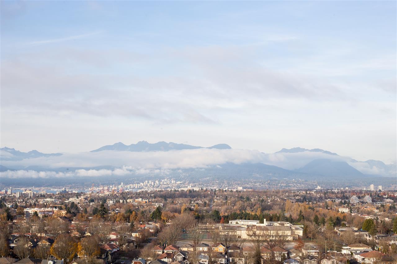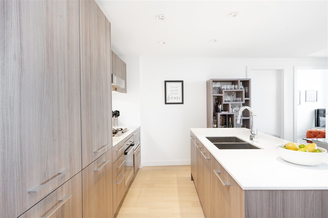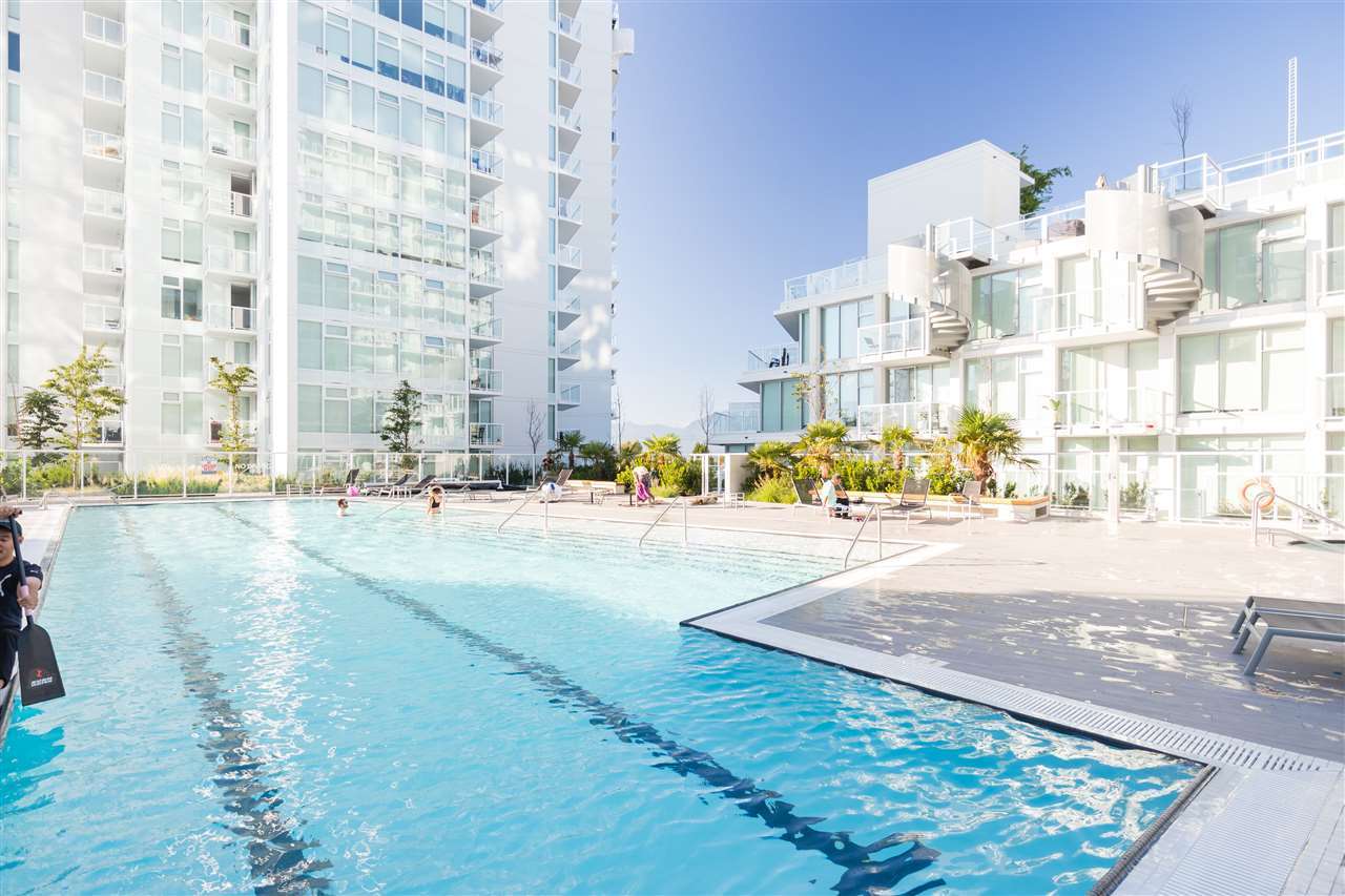 Sub-Penthouse at Kensington Gardens by Westbank! Enjoy world-class views of the City skyline, water & NS Mntns from this nearly 1000 sqft 3 bed + den executive home. This intelligently designed air-conditioned interior features wide-plank engineered hw floors, durable Corian counters, imported European cabinetry, Blomberg/Miele s/s appliance package incl side-by-side refrigerators, b/in wall oven, eating bar & sleek undercabinet lighting. This master-planned community features amazing hotel-style experience incl outdoor pool, hot tub, sauna, exercise facility, party room, theatre, outdoor BBQ/fireplaces, & playground. Complete with 2 side-by-side parking, 1 locker. Don't miss your chance to watch iconic Vancouver sunsets from your 2 completely private balconies!