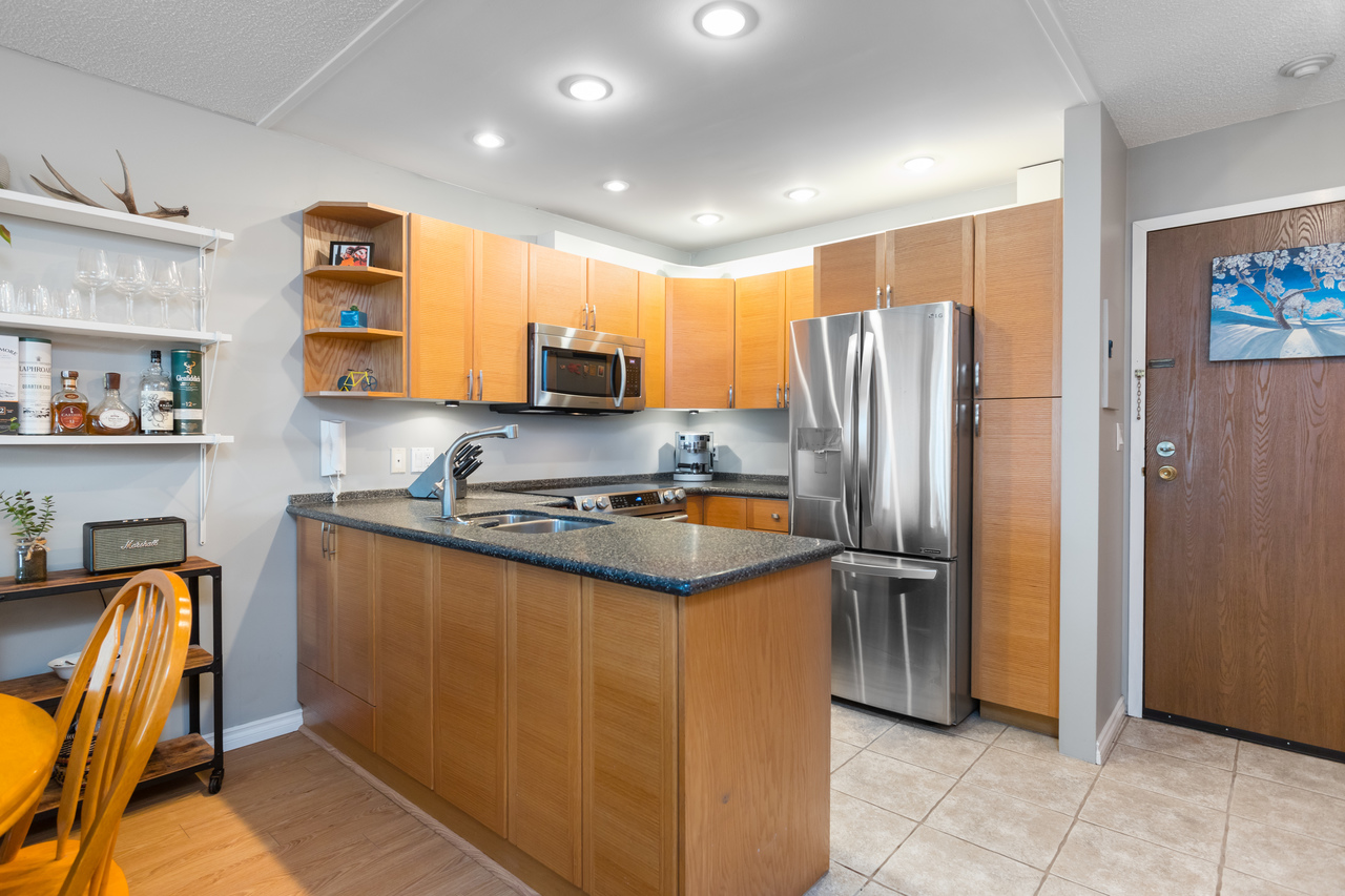 South-facing 2-bed 2-bath TOP FLOOR condo in the Viewport! This well-maintained PET and RENTAL FRIENDLY building is located on one of Lower Lonsdale’s most coveted streets, steps to the SeaBus & Lonsdale Quay, and to the many trendy shops and restaurants. This gorgeous open-concept suite features an updated entertainer’s kitchen with large bar and new s/s appliances, open to generous dining area and bright living room with high vaulted ceilings. Two large bedrooms and updated bathrooms complete this rare offering. Unwind on the large BBQ balcony and take in the southwest-facing water, bridge & sunset views. Building has 3 laundry rooms, one right next to this home. A great investment property for any purchaser!