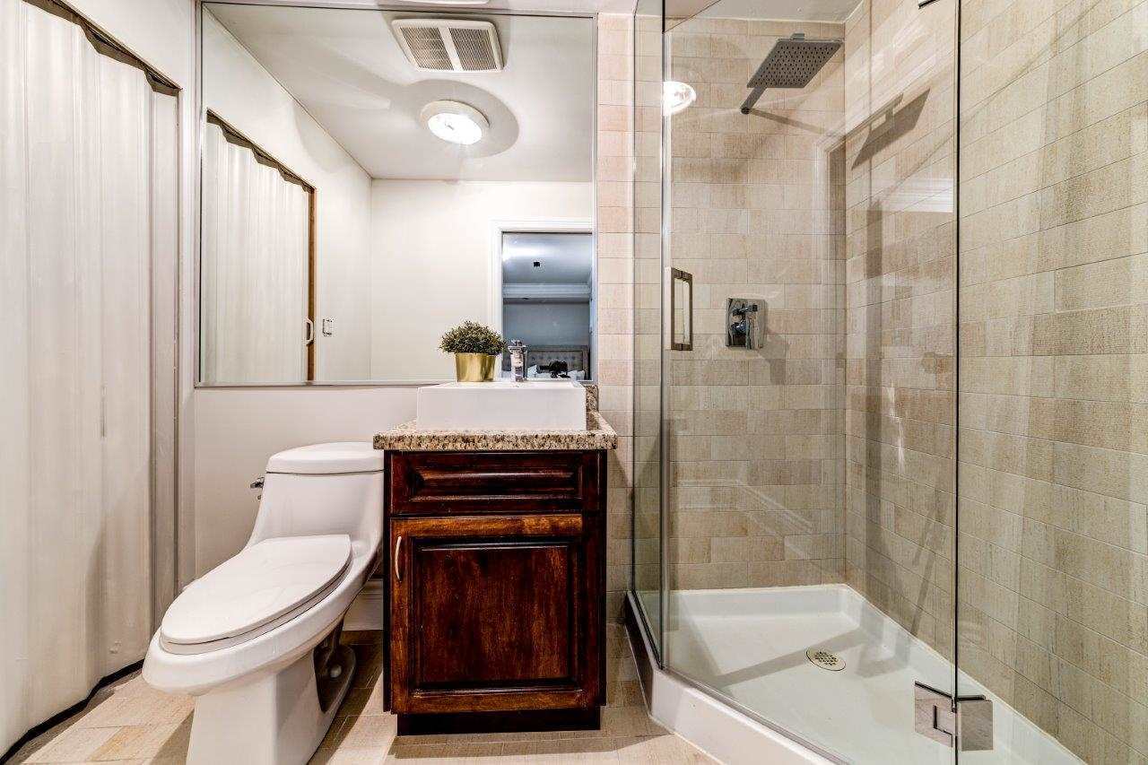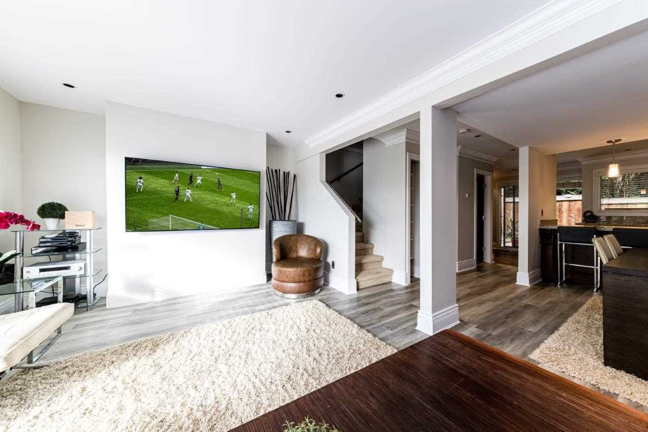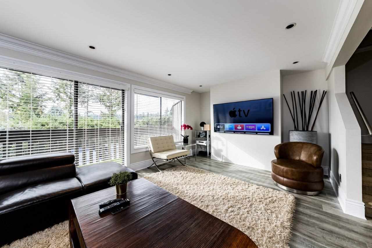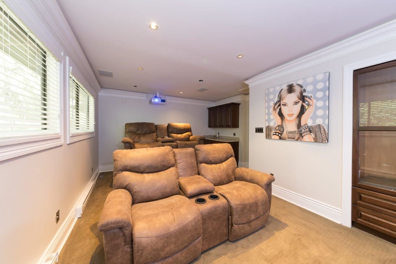 You won't believe this one- an incredible renovation from top to bottom with everything you could want for entertaining, just kicking back or to wow your friends. This beautiful reno includes a new open plan kitchen with s/s appliances, granite counters, quality fixtures, suspended hood fan & eating bar. There are 3 new bathrooms, triple crown moldings, pot lighting, walnut doors with white glass, a near new furnace, hot water tank & a full electrical service update. Upstairs features the ultimate man cave with full theater, wet bar, projection TV, 90” screen & extra soundproofing. This private unit faces greenbelt, has a city VIEW, a ton of outdoor space with massive south facing view deck & large rear patio for BBQ's. Seller can convert theater back to 2 additional bedrooms if needed.