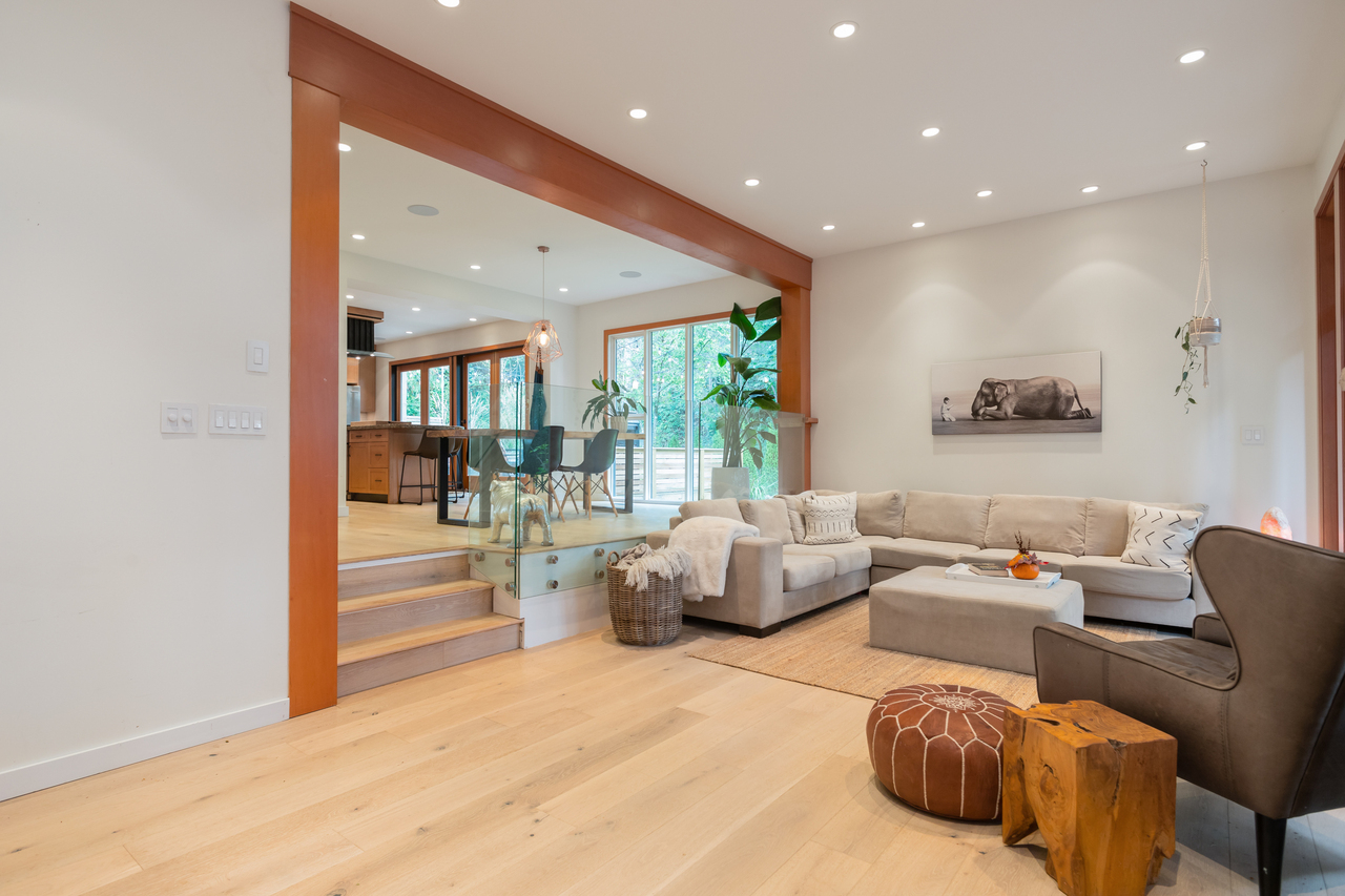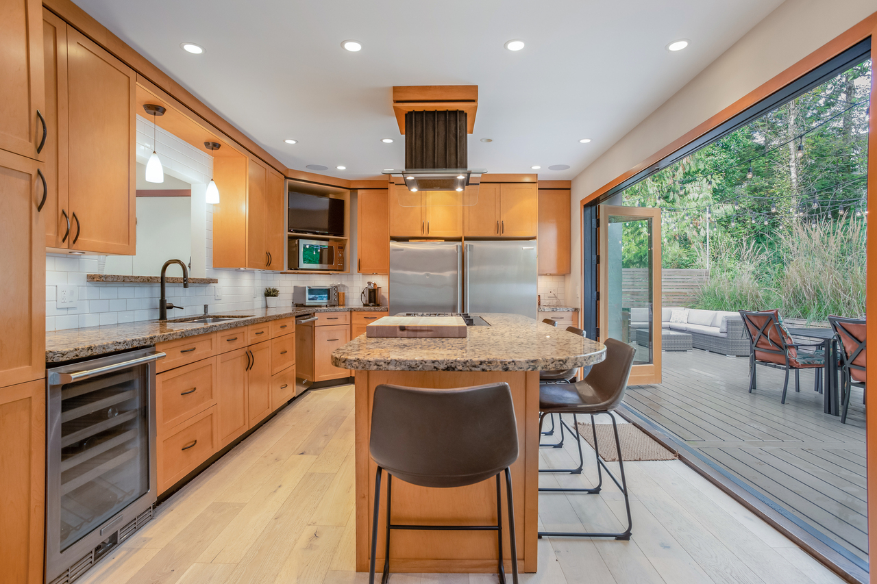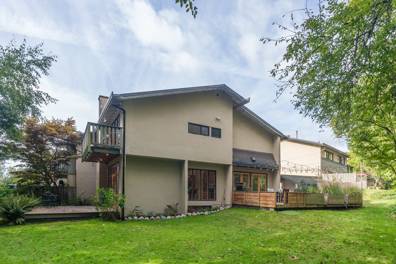 Outstanding value here in this spacious 2763 sqft 5-bedroom 4-bathroom family home. The open plan main floor has undergone a complete renovation which opens onto the 2 large patios via beautiful fir accordion and French doors. Main floor feat. Chef's dream kitchen w/ sprawling granite island and Electrolux appliance package overlooking huge dining room and sunken living room w/ new cozy gas f/p and live edge mantle. New white oak eng hw floors and pot lights throughout, plus flush b/i speakers on the main + patio. Exterior features 2 HUGE entertaining patios w/ ample room for outdoor dining, and both overlooking grass yard ideal for kids and pets. Complete with 2 side-by-side parking. Complex features outdoor pool and welcomes two pets and rentals w/ restrictions. Call today!
