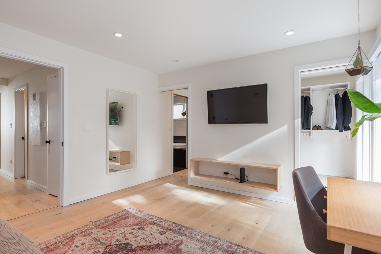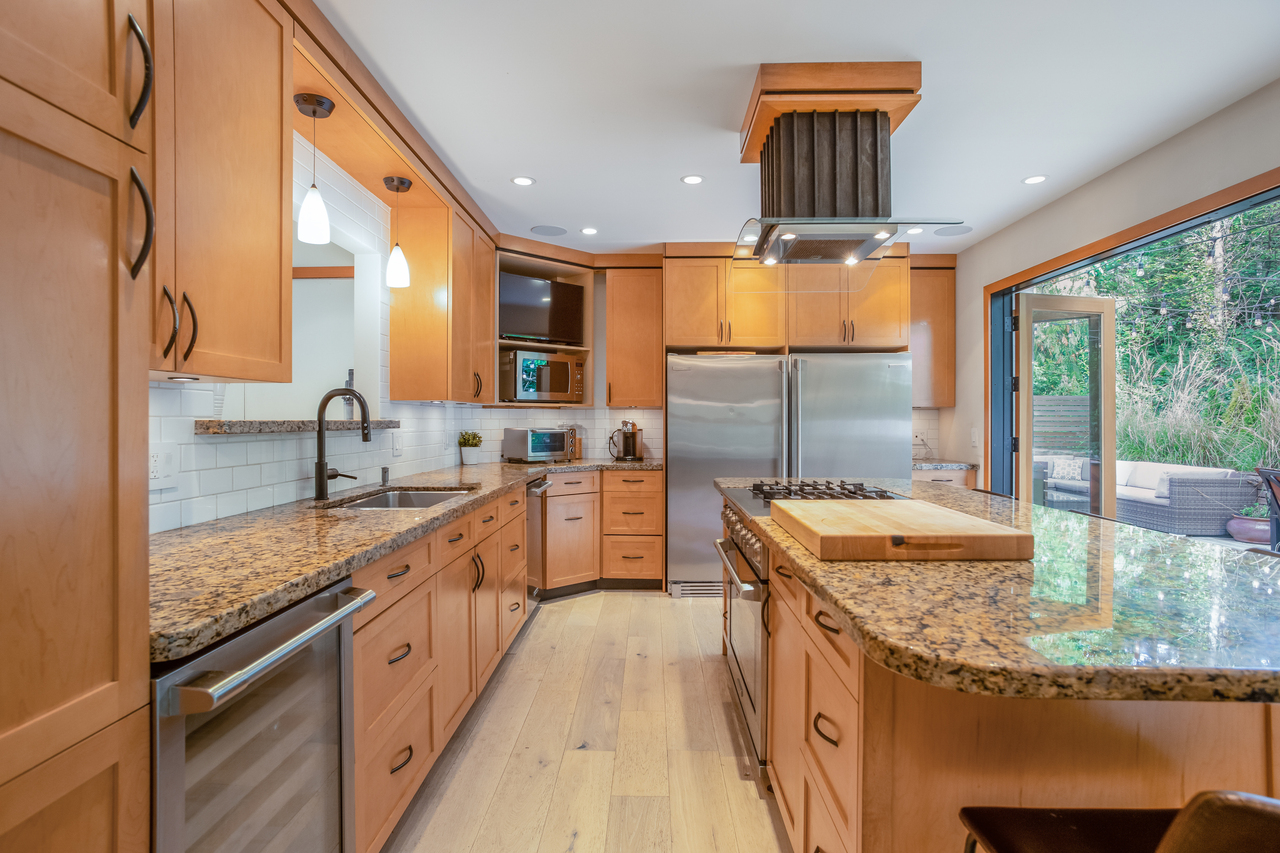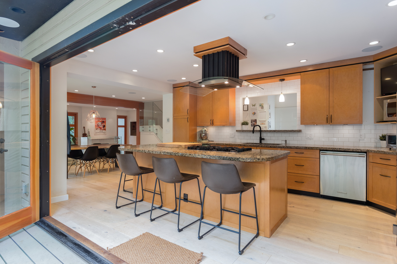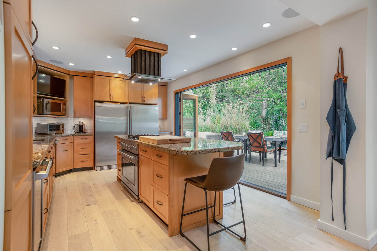 Outstanding value here in this spacious 2763 sqft 5-bedroom 4-bathroom family home. The open plan main floor has undergone a complete renovation which opens onto the 2 large patios via beautiful fir accordion and French doors. Main floor feat. Chef's dream kitchen w/ sprawling granite island and Electrolux appliance package overlooking huge dining room and sunken living room w/ new cozy gas f/p and live edge mantle. New white oak eng hw floors and pot lights throughout, plus flush b/i speakers on the main + patio. Exterior features 2 HUGE entertaining patios w/ ample room for outdoor dining, and both overlooking grass yard ideal for kids and pets. Complete with 2 side-by-side parking. Complex features outdoor pool and welcomes two pets and rentals w/ restrictions. Call today!