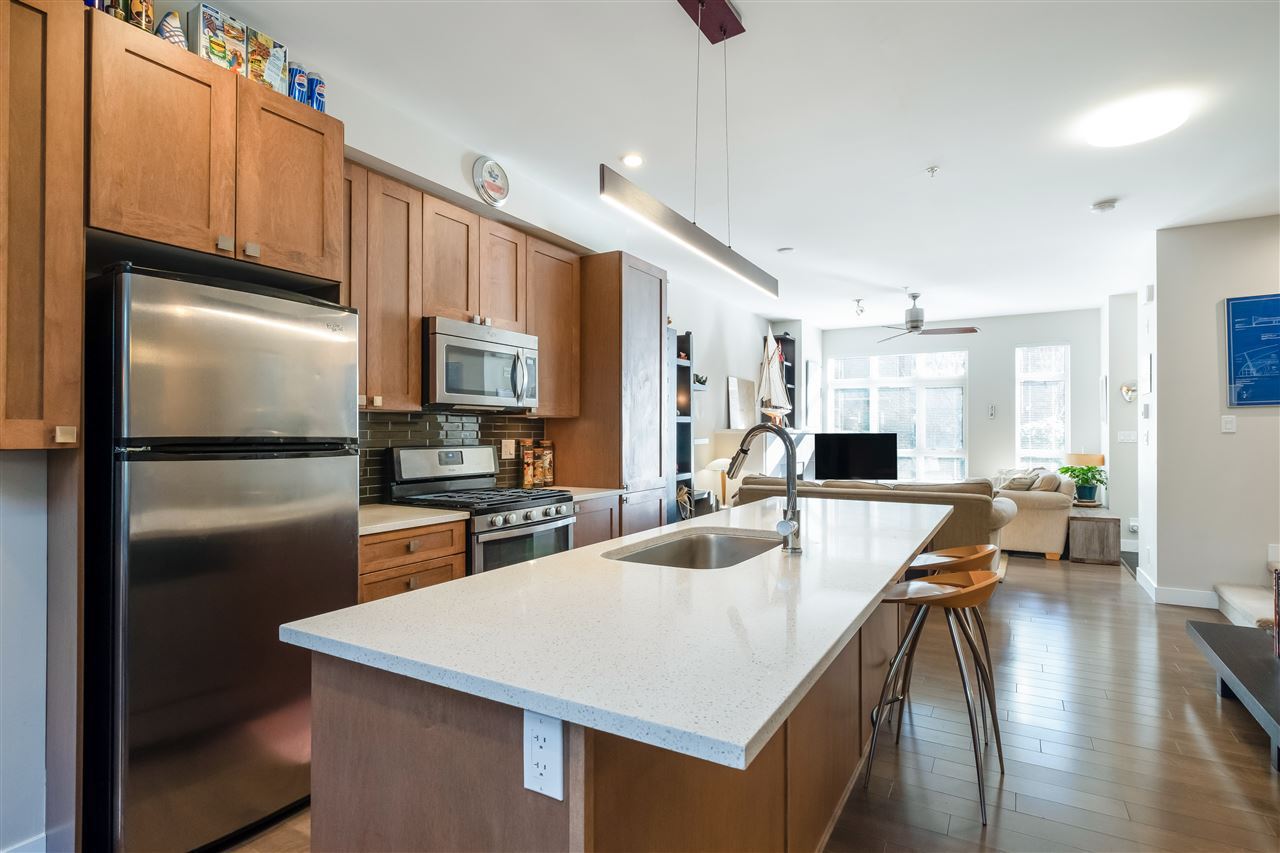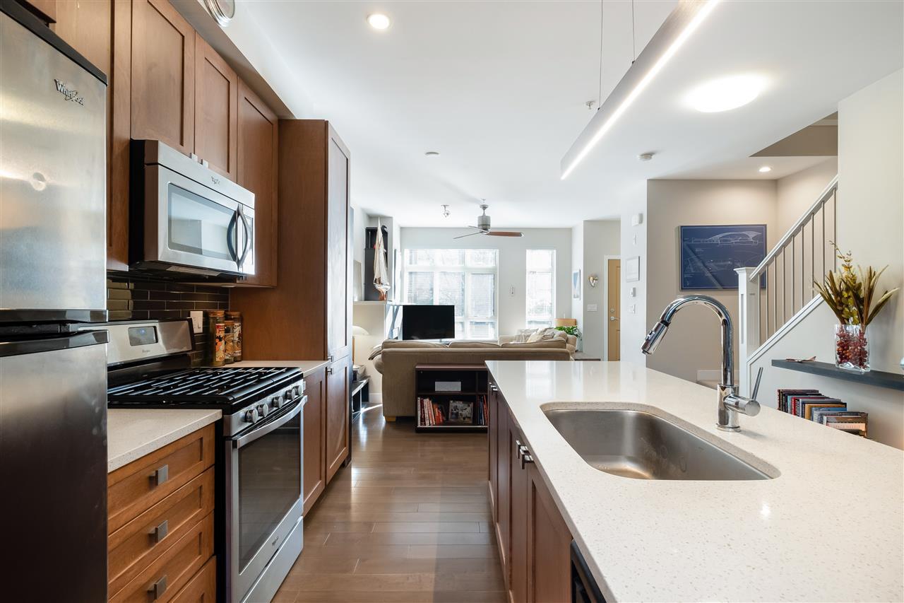 Enjoy beautiful views of Northlands Golf Course from this designer 3-bedroom 3-bathroom townhome in sought after Northlands Terrace! Enjoy bright open concept living on the main with engineered hardwood floors, quartz counters, gas cooktop, shaker cabinets, large kitchen island and cozy gas fireplace. Entertain outdoors on one of two patios including back BBQ deck set against the golf course. Above enjoy 3 beds incl large master suite with overheight ceilings, beautiful ensuite bathroom and walk-in-closet. Below feat generous rec room, laundry room, and direct access to your 2 secured parking stalls. Worry-free complex featuring gym, guest suite, and direct access to walking trails leading directly to shopping. Very convenient access to Hwy 1 and the bridge. Don't miss it - call now!