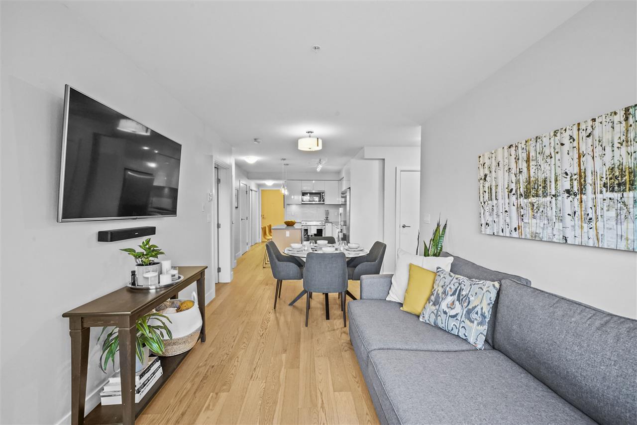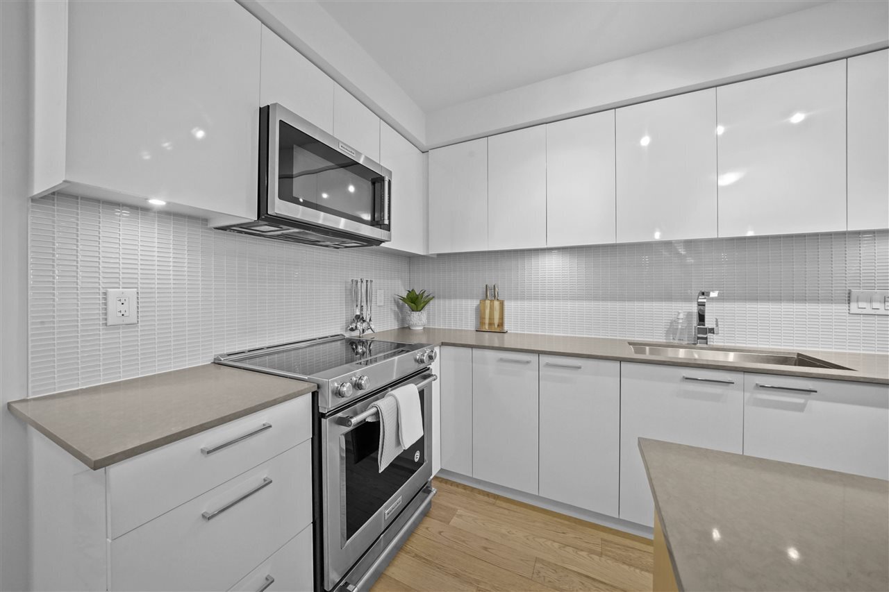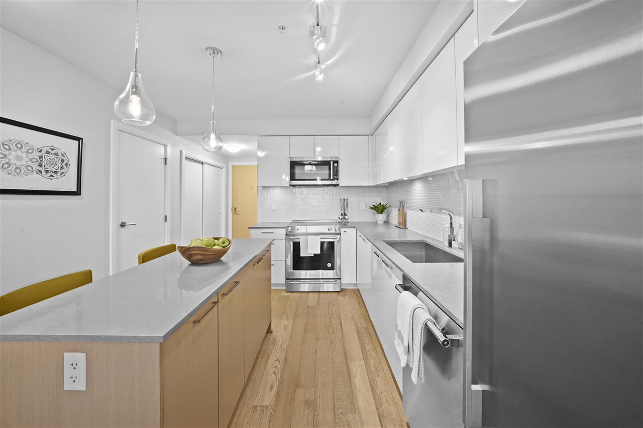 Enjoy life in vibrant Mt. Pleasant in this modern, large & contemporary 2-bed, 2-bath w/ den/office & in suite storage in addition to 2 secure storage spaces. Offering “full size” living, all appliances, showers/tubs, walk-through closet & storage are full size. This home boasts mountain views, large private balcony, gourmet kitchen equipped w/ quartz countertops, high-end s/s appliances & high-gloss cabinetry. Enjoy the comforts of this well-designed, spacious home where no detail has been missed. Perfectly kept & in amazing condition, you'll be sure to fall in love with the space & comforts this home provides. Additionally the building features a large amenity center & common patio space perfect for hosting gatherings, pet/rental friendly, under warranty & steps from the essentials.
