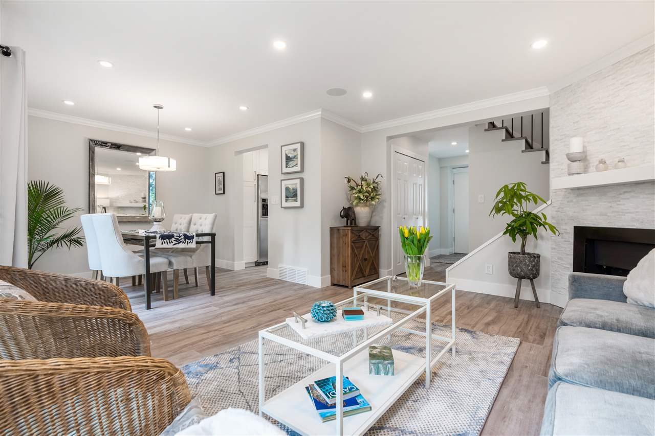 STUNNING RENOVATION! Don't miss this 4-bed 3-bath completely remodeled townhome in lovely Lillooet Place. Huge 1900 sqft home featuring high end custom finishes including soft-close cabinetry, quartz counters, s/s appliances, all new bathrooms, new drywall, baseboards & crown mouldings, pot lighting, built-in speakers, new paint and new flooring throughout. Bonus: new oversized back patio overlooking green space that walks onto Cap U's large soccer field! Lillooet Place is the spot for young families and pets offering pool, playground and located just steps to Interriver Fields and Bike Park, the Demonstration Forest, Capilano U, and Lynn Creek. Two parking spots completes this amazing package. Book your appointment today!