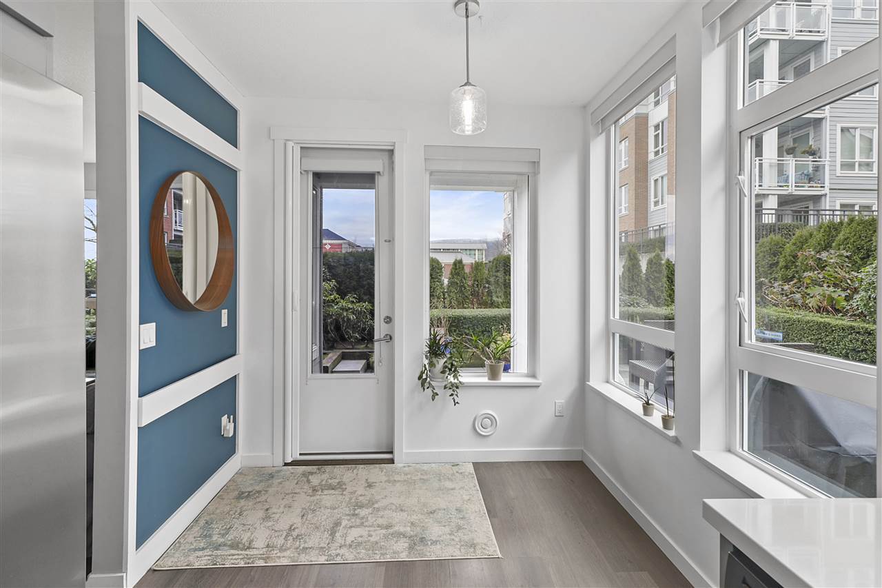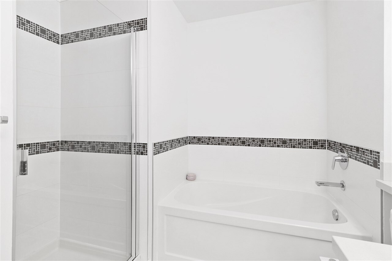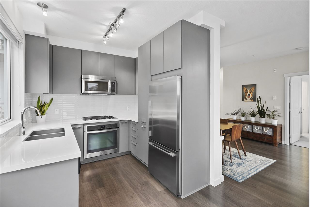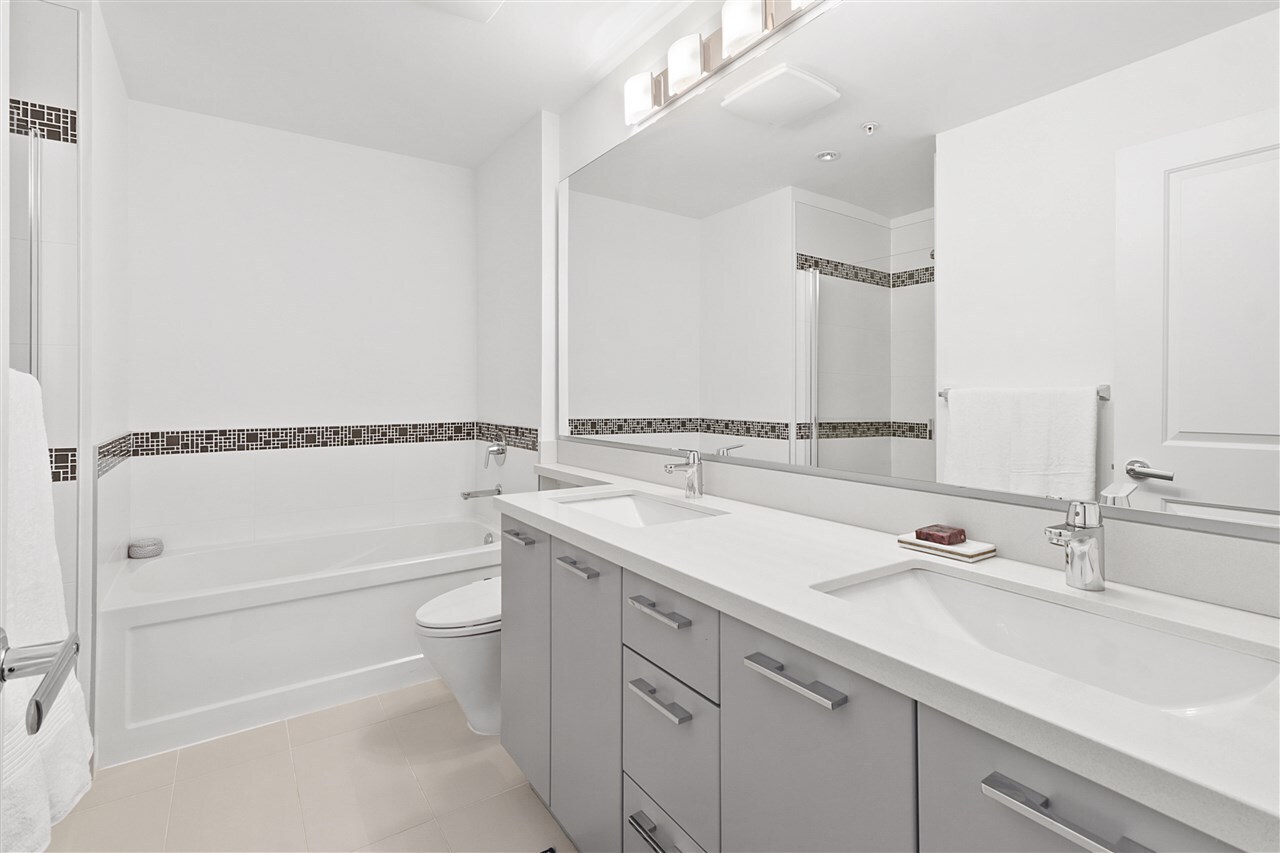 Access your beautiful 2 BR 2 full BTH home from the common area hallway or enter from the private, discretely-situated exterior door to your own huge patio. The spacious living/dining room is strategically separated from the modern kitchen which boasts adjoining space that could be used as an eating area or for a large desk. Situated on the quiet side of building ...bedrooms are entirely separated from each other. Feature details include stone counters, s/s kitchen appliances, modern lighting including directional ceiling light for that special centerpiece artwork, mixed wood/tile/carpet flooring, even a Tushy bidet in master bathroom! Close to Seabus, Victoria Park, short walk to enjoy the buzz of Lower Lonsdale then return to the relative peace of your lovely Central Lonsdale home.