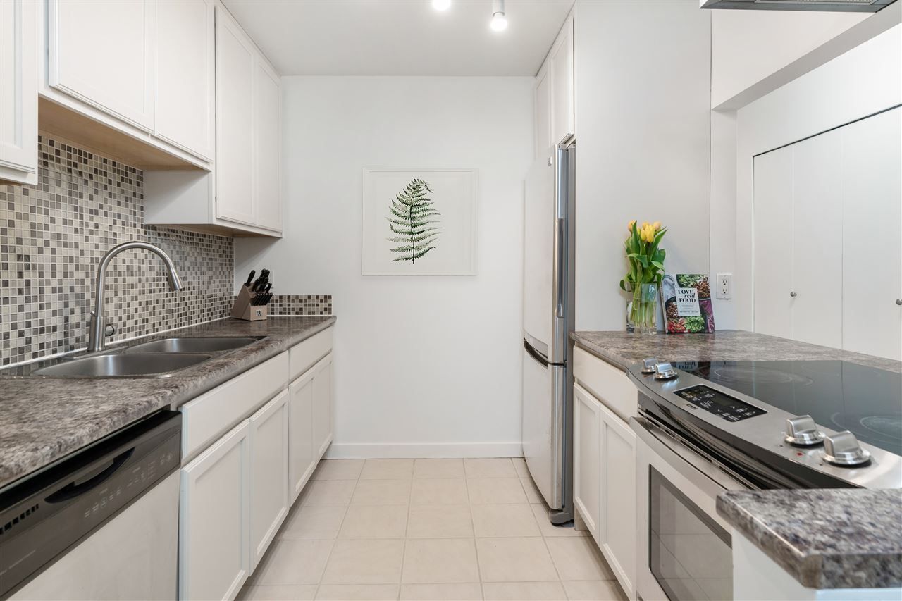 Calling all first time buyers and investors - Don't miss this PETS and RENTAL FRIENDLY rarely available 2-Bed, 1-Bath corner home! Featuring open concept living, s/s appliances, upgraded lighting, laminate flooring, in-suite laundry, fresh paint, custom closet built-ins, and very generous room sizes. Enjoy summer BBQ's on one of your 2 private balconies, or relax on the common rooftop patio with beautiful city views. Invest with confidence: Harbourside Terrace was totally renovated in 2010 including full rainscreen, roof, patio doors, balconies, windows, courtyards + garden. Ideally located very short walking distance to the SeaBus and all of the shops and restaurants Lower Lonsdale is known for. Comes complete with 2 parking stalls. Call to book your private viewing today!