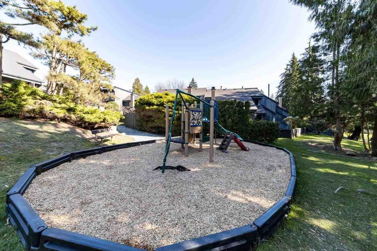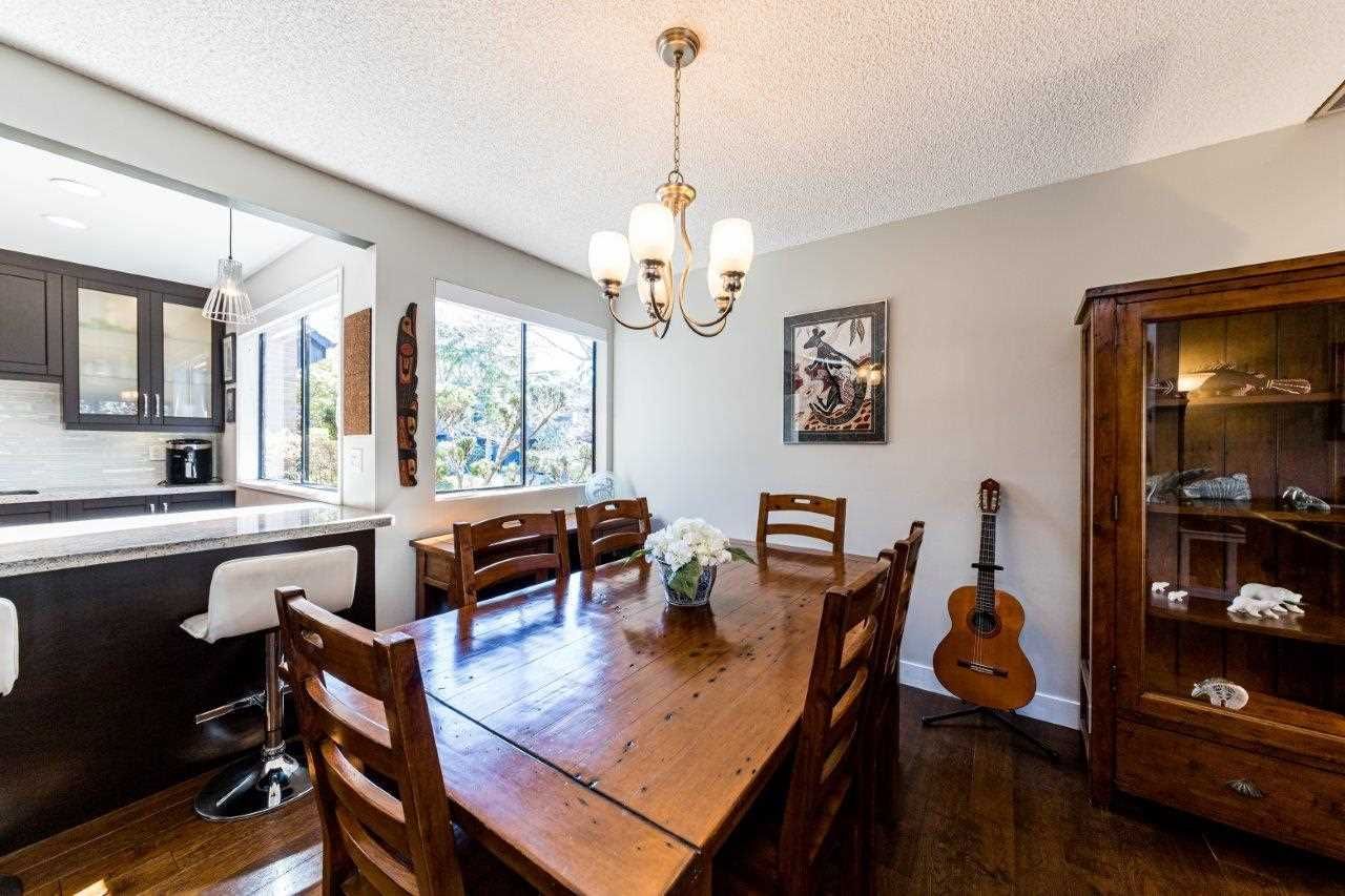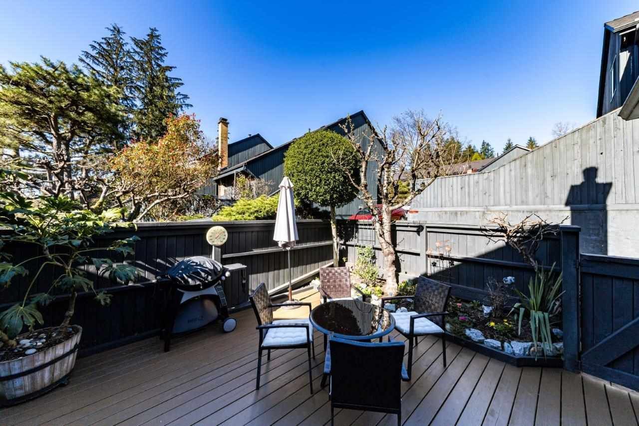 Rare Find ! Family Oriented complex with lots of green space and mature gardens. 3 level townhouse with 2 bedrooms and den/ flex room up, 2 baths, full basement. Features Architecturally designed space with vaulted ceiling open concept with sit up eating bar, granite counters ,stainless high end appliances.Sliders onto west exposed suntrap deck. Gardeners delight. Oak hardwood floors, gas fired fireplace with fan for cozy evenings. Playground on site , outdoor pool with sauna. Walk to waterfront parks, Deep Cove Village, Parkgate shopping centre, schools. Bordering Seymour Golf Club and short distance to Northlands Golf and restaurant. Truly exudes the Deep Cove lifestyle in this well maintained Village. Child safe location, pets ok. The video and pictures tell it all. Parking for 4.