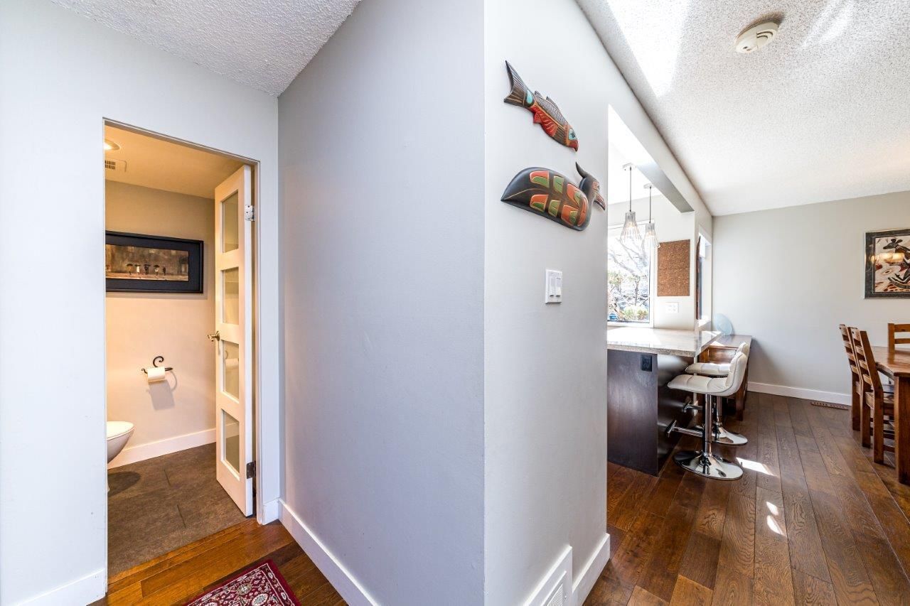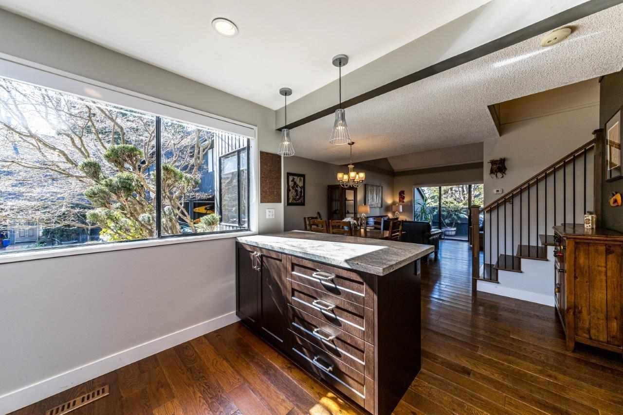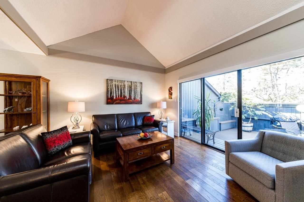 Rare Find ! Family Oriented complex with lots of green space and mature gardens. 3 level townhouse with 2 bedrooms and den/ flex room up, 2 baths, full basement. Features Architecturally designed space with vaulted ceiling open concept with sit up eating bar, granite counters ,stainless high end appliances.Sliders onto west exposed suntrap deck. Gardeners delight. Oak hardwood floors, gas fired fireplace with fan for cozy evenings. Playground on site , outdoor pool with sauna. Walk to waterfront parks, Deep Cove Village, Parkgate shopping centre, schools. Bordering Seymour Golf Club and short distance to Northlands Golf and restaurant. Truly exudes the Deep Cove lifestyle in this well maintained Village. Child safe location, pets ok. The video and pictures tell it all. Parking for 4.