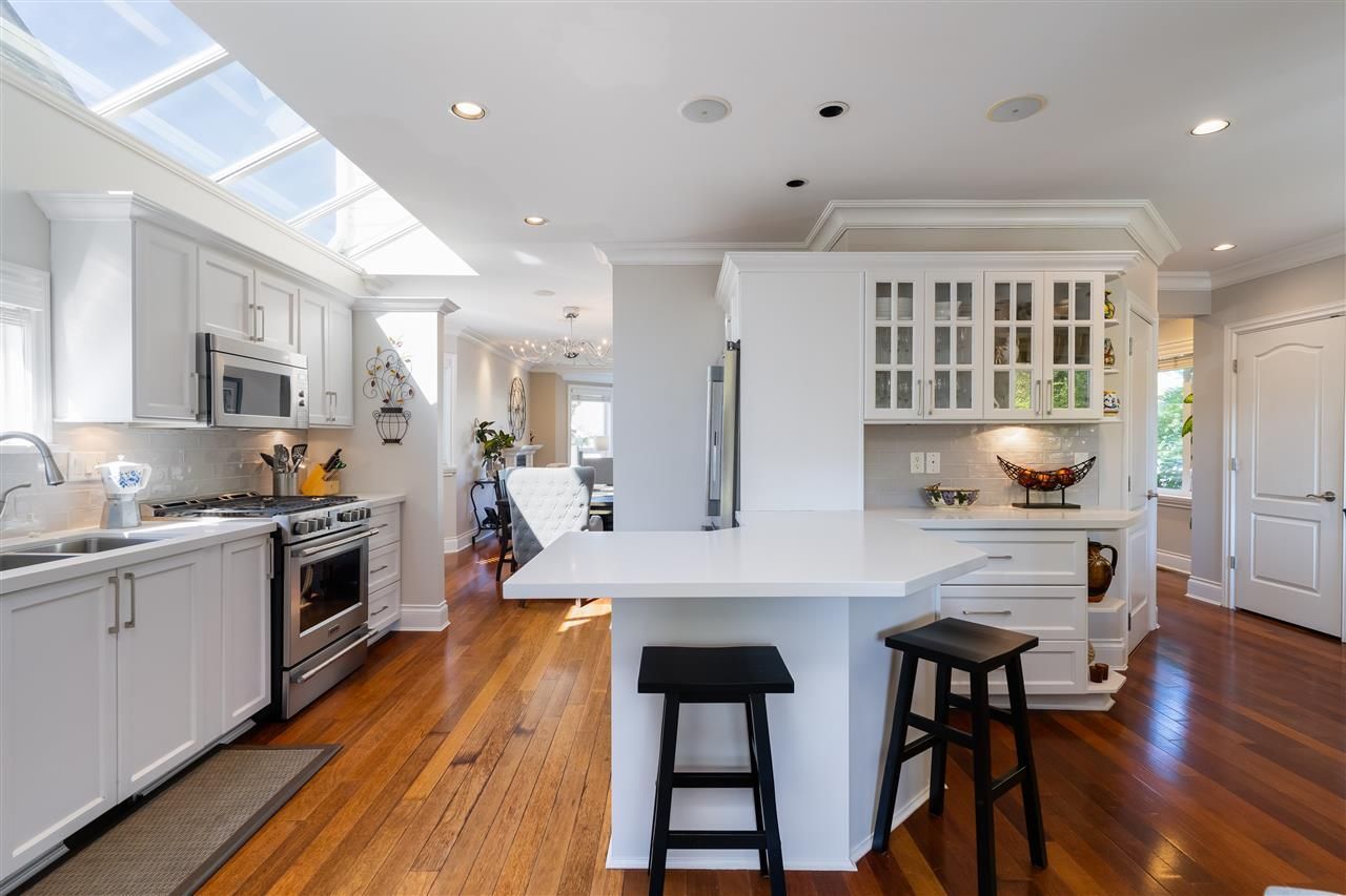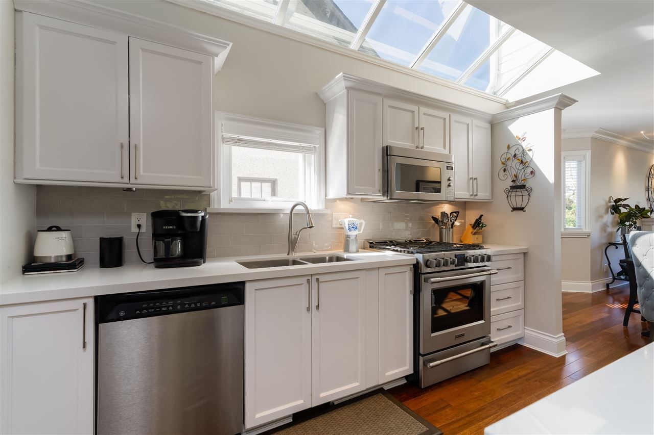 It is our pleasure to present this 2007 custom-built home on quiet Chesterfield Avenue in Upper Lonsdale! Well-appointed 4-bedroom home offering 3 generously-sized beds up and large rec room down, incl master suite w/ walk-in closet and 5pc ensuite. Expansive open kitchen w/ loads of natural light, wood shaker cabinets, s/s Frigidaire appl, and quartz counters. Beautiful West Coast architecture w/ wood accents and hardwood floors throughout, soaring vaulted ceilings and large windows. Legal 1-bedroom suite w/ private access and yard, plus BONUS detached 2-car garage turned home office/studio. Very bright corner property with peek-a-boo views to the City and LG Bridge, a short walk to Larson Elem and Carson Graham High (IB), transit and the shops of Lonsdale. Call for your private viewing!