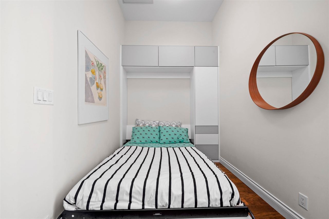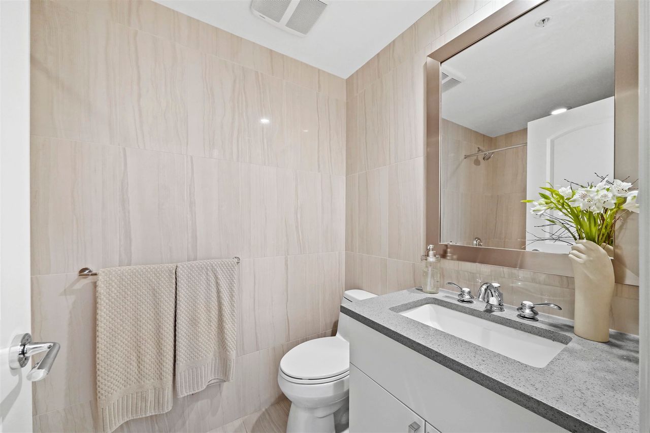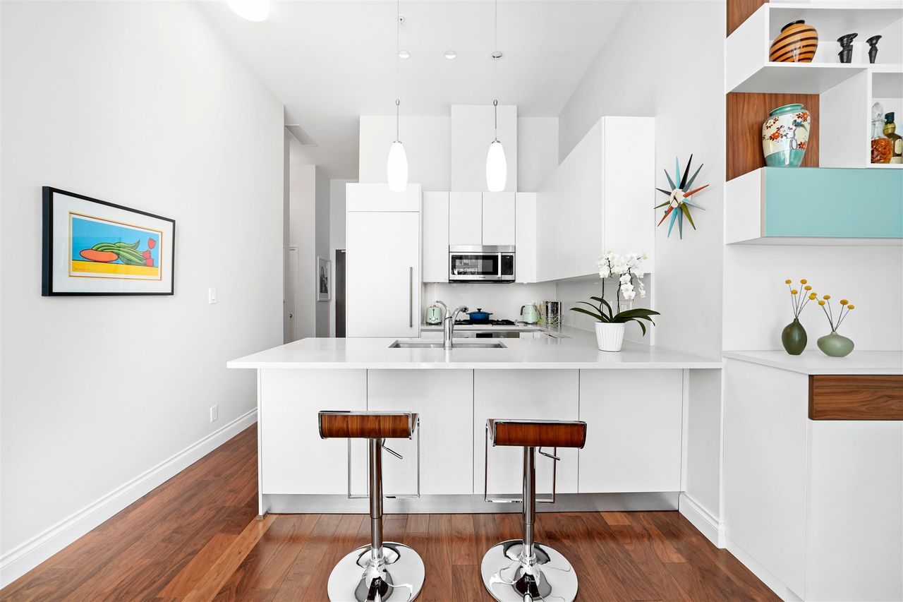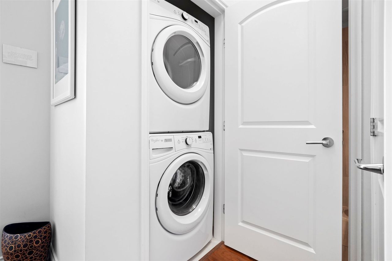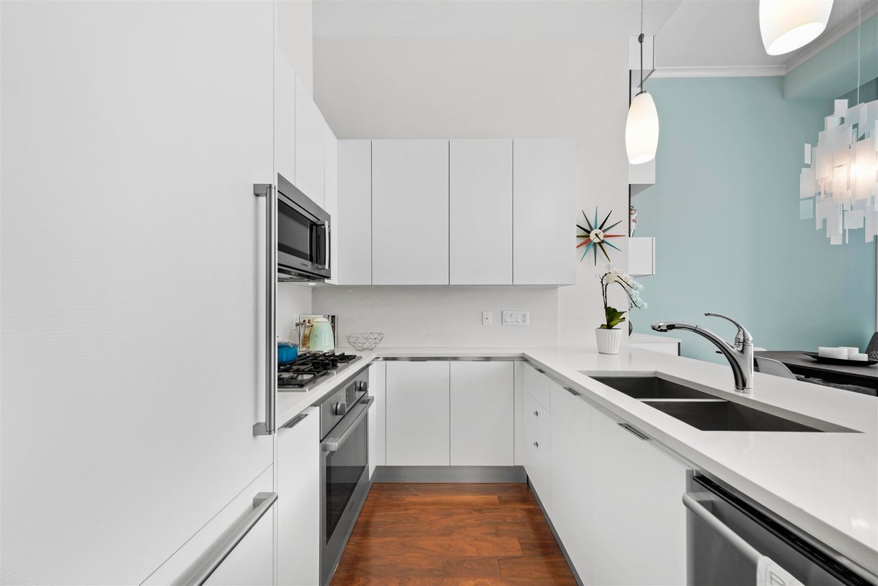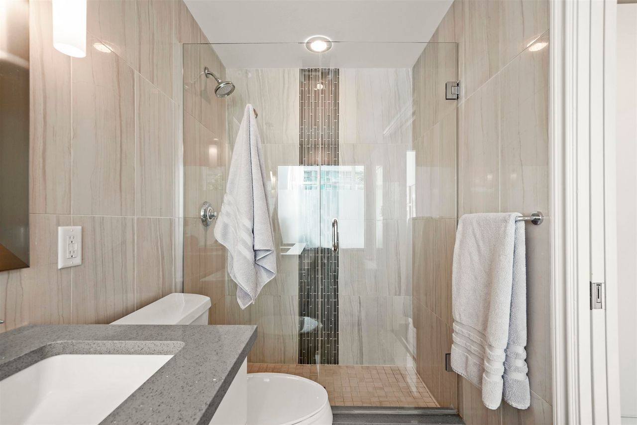 A jewel of a home! You have found an incredible, modern & luxurious home in this large 1-bed & den masterpiece. Located in North Vancouver’s premium location right at the waterfront. This home features vast 14-foot ceilings, A/C, Bosch appliances, Scavolini kitchen, custom wall unit w/ wine bar, queen wall bed & desk, walk-in closet w/ built-ins for clothing/storage, & 2 full baths including a lovely spa-like ensuite. Entertain on the huge patio, w/ private walk-up access or enjoy the incredible roof-top deck w/ hot tub, firepit & BBQ. Included w/ this home is the fitness centre with pool at the Pinnacle Hotel. Truly a lifestyle home just steps away from the excitement, restaurants, entertainment & conveniences of Lower Lonsdale, & a short walk to the Lonsdale Quay market and Seabus.