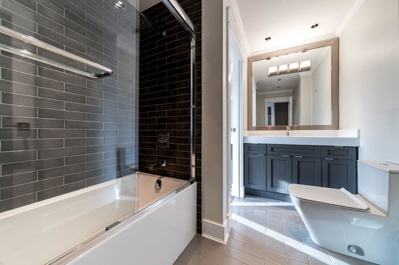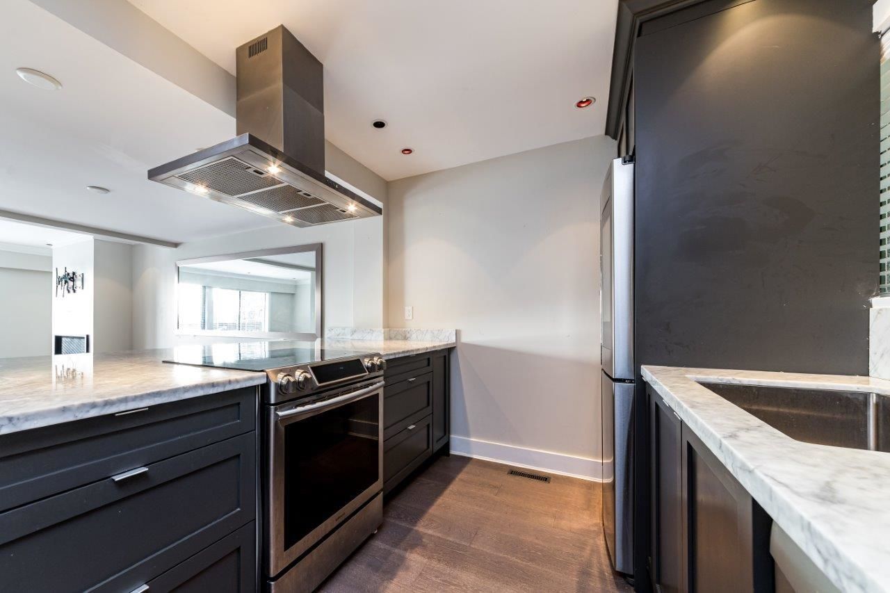 Over $150,000 spent on the renovation of this stunning 4/5 bdrm, 3 bath townhome. Boasting luxury finishings, this private view home features an open plan kitchen with white BiancaNero Marble countertops, modern dark grey cabinetry throughout, stainless steel appliances including Samsung’s newest interactive smart fridge. All bathrooms have been completely renovated with new glass shower doors, 1pc Duravit toilets, new modern tile & European Grohe fixtures. The spacious living room has a new 20 ft view deck, new 48" linear gas fireplace, all new ceilings & black alzac pot lighting with dimmer systems, crown & baseboards and millwork thoughout. The main level has modern 7" wide plank engineered hardwood in smoke grey & plush carpeting finishes off the upper bdrms. OPEN CANCELED.