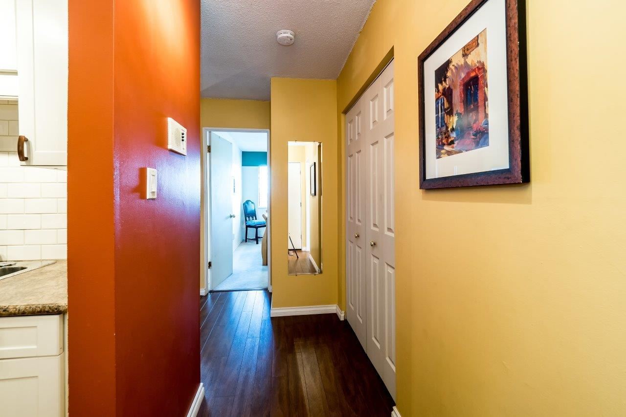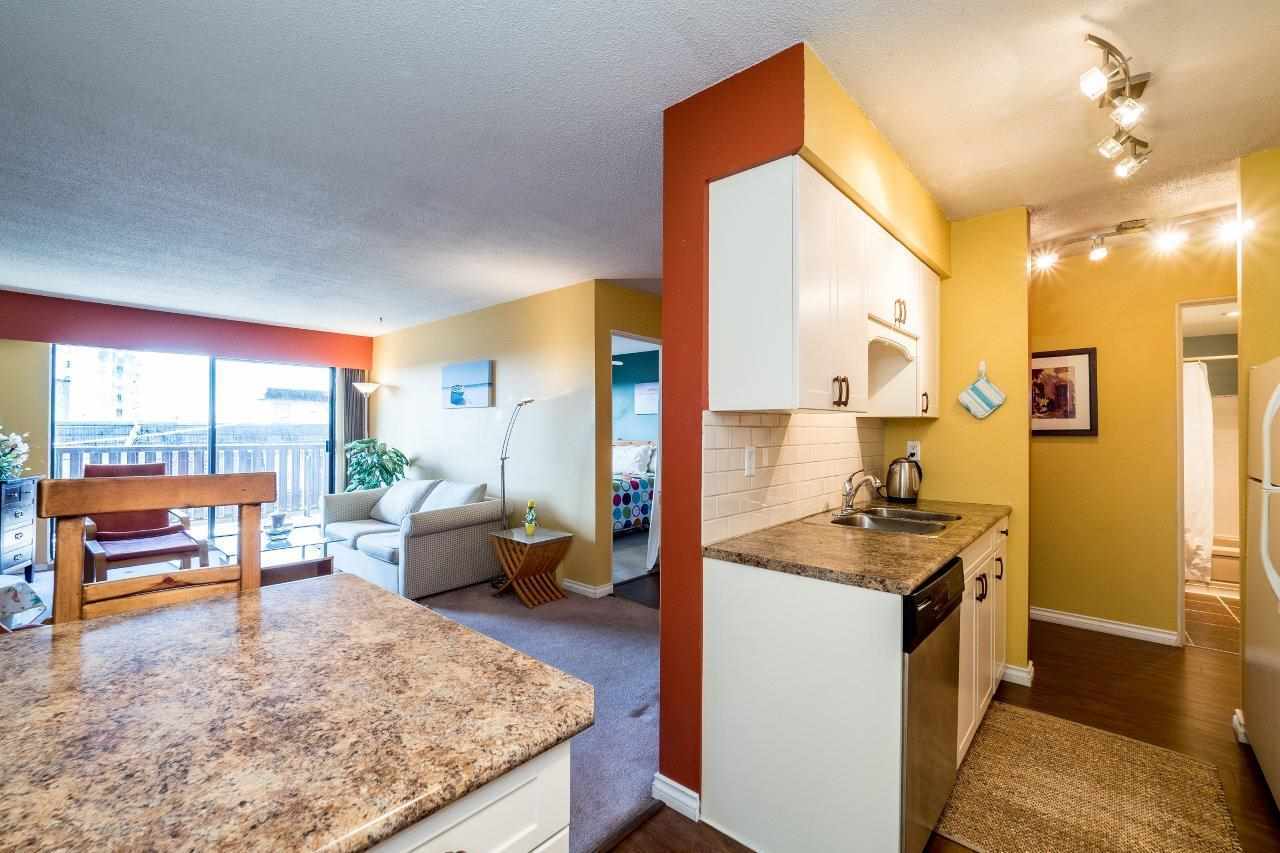 Check out this SOUTHFACING, 1 bedroom suite in this quiet yet convenient Lower Lonsdale location. The kitchen has been renovated and a convenient eating island placed in the dining area. There is laminate flooring in the entry hall, kitchen and dining area and cosy carpeting throughout the rest of the unit. The bathroom has had some updates and most doors and lighting upgraded. An oversized balcony even offers a city skyline view! OPEN SATURDAY & SUNDAY, APRIL 8th & 9th 2-4.