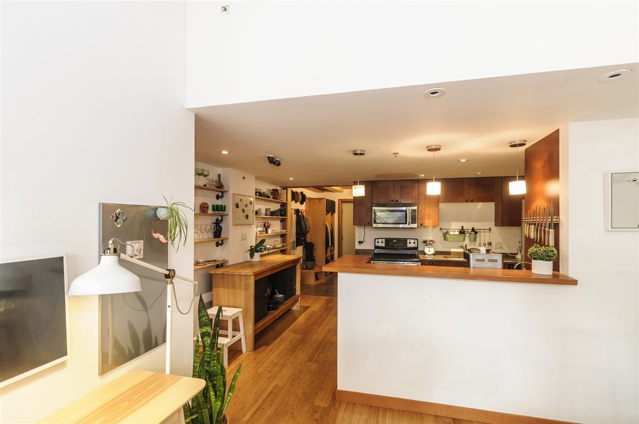 Unique 2 level loft in Mount Pleasant at the “Artech”. This unit features: 16’ ceilings; 2 bedrooms up, + den/walk-in-closet; creative in-suite storage; updated floors, kitchen, and bath; reclaimed fir wall in bedroom; spacious living area; large south-facing windows bringing in loads of natural light; low maintenance fees; in-suite laundry; & 1 parking. The “Artech” is a solid building with steel cladded exterior & huge rooftop area with excellent views. Also, it’s a live/work building. Enjoy this superb location today, just steps to restaurants, seawall, shopping, transit, & downtown! And look forward to seeing some great developments in the coming years which are sure to work wonders for your investment and livability!