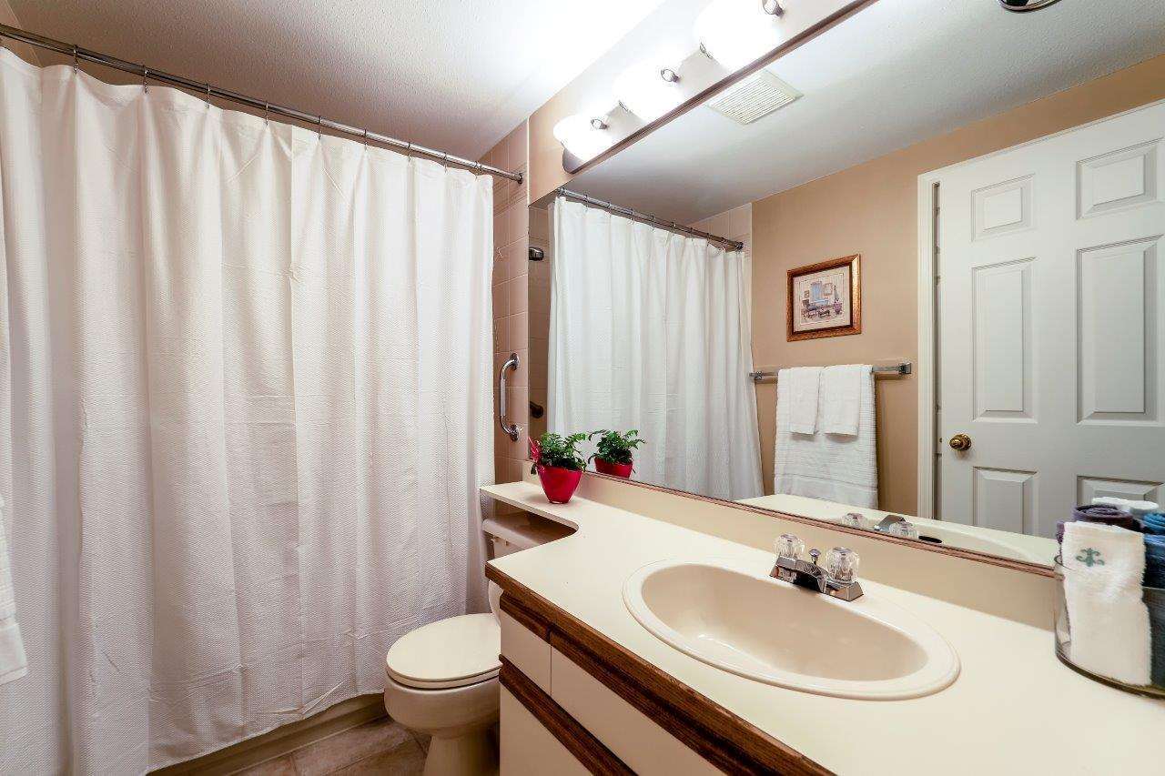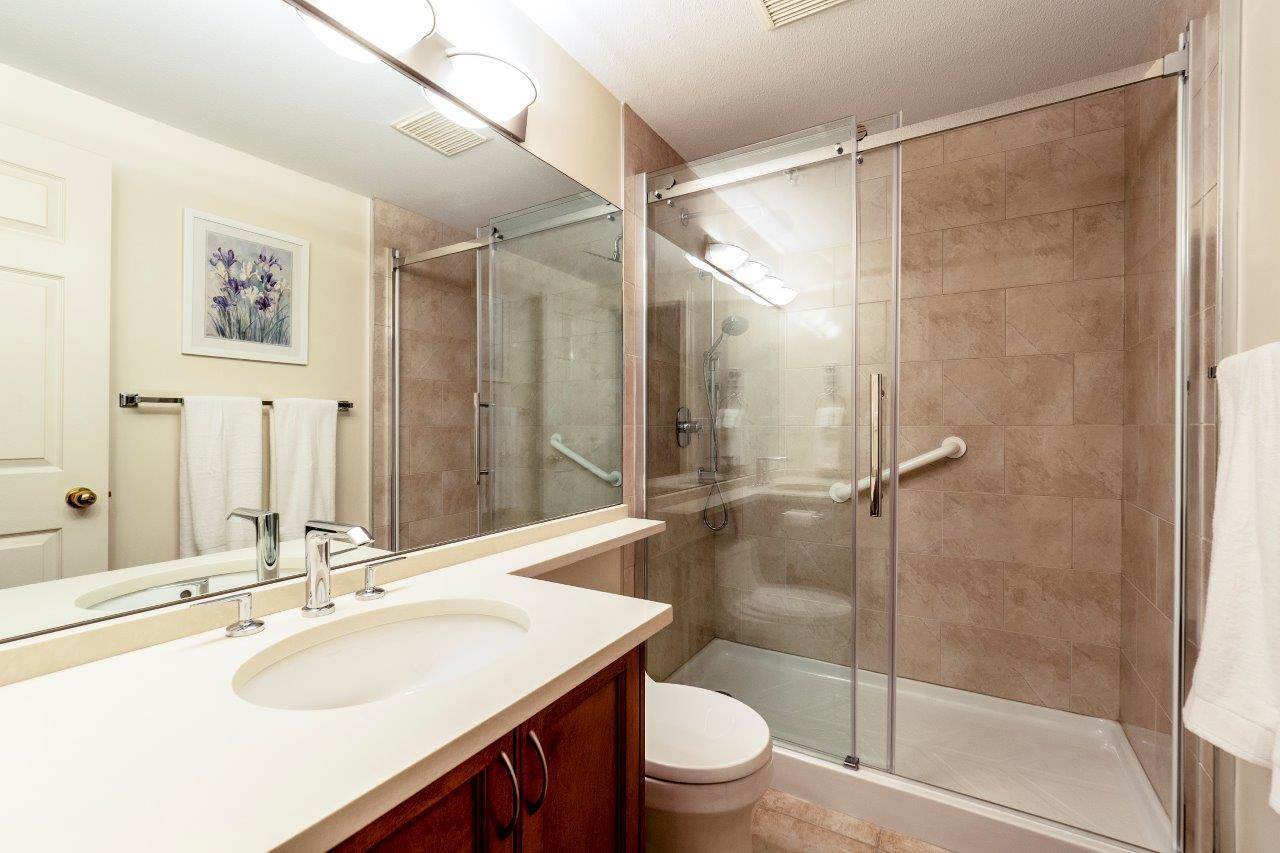 This is actually a GROUND LEVEL patio suite on the quiet side of Parkway Terrace with over 1,400 sq ft of indoor living space plus over 250 sq ft of outdoor space. This bright, quiet, west facing 2 bedroom + den garden apartment is perfect for anyone looking for quality in a home. The kitchen has been updated with Thomasville cabinetry, pot lighting, silestone counters, top notch Whirlpool stainless steel appliances and it has a quaint breakfast nook. There are 2 large bedrooms, both with ensuite baths and the master features a huge walk in closet, a tastefully renovated bathroom with double shower and a private treed outlook. There is a cosy gas fireplace, bonus den, large laundry room, storage and you can bring your pet & large furnishings!