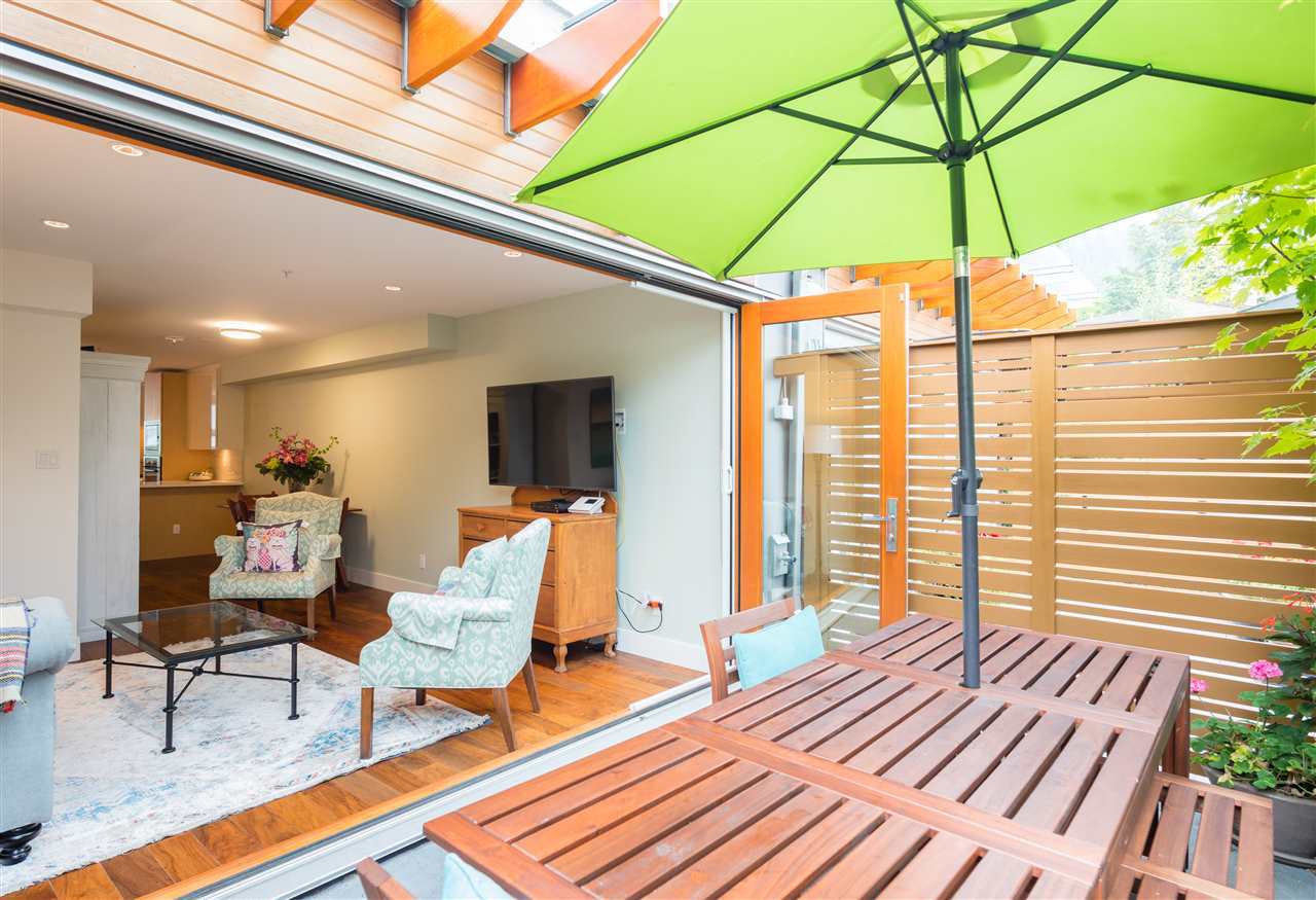DEEP COVE TOWNHOME WITH OCEAN VIEWS, STEPS TO THE BEACH. Cove Gardens is a luxury, boutique complex, nestled on a quiet block in the waterfront community of Deep Cove. A fantastic floor plan that blends inside & outdoor spaces w/ top of the line finishings. Ideal home for a working couple who love to entertain, an active downsizer who values the outdoors & walkability of location, or a young family who seeks great schools & the ultimate outdoor playground. This is so much more than a home, it's a true lifestyle. Steps to Deep Cove Yacht Club, Panorama Park & the beach. Wake up to views, grab your kayak for a morning paddle, wine & dine at sunset on your multiple patios. Two parking, storage, two spots for kayaks. A rare opportunity to live the Deep Cove Dream...