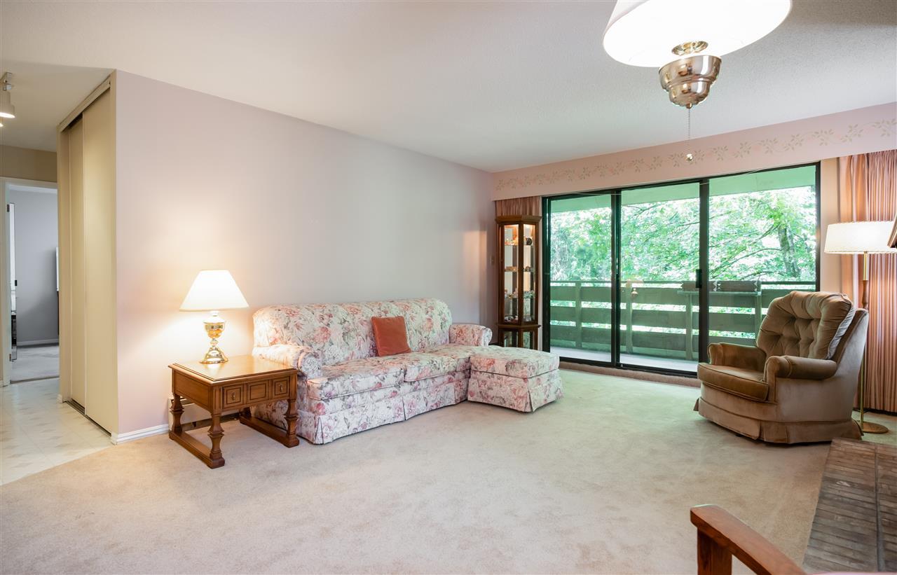 Privacy, Peace, Tranquility, & Greenbelt views are yours in this meticulously maintained home. Hard to find in a condo these days is a formal dining & living room with a cozy wood burning f/p, a bright white kitchen with eating nook, plenty of insuite storage, & a spacious floor plan with bedrooms separated from the main living areas. 2 generous size bedrooms, master with walk in closet, 2pc bath, sliders to the East Facing balcony, & can easily accommodate a king size bed, & more! Brookwood North is tucked away on a quiet cul-de-sac, is pet & rental friendly, allows insuite laundry (with strata approval) & is steps from transit, schools, world class trails, recreation, shopping, & dining - a perfect fit for 1st time buyers, couples, families, and empty nesters!