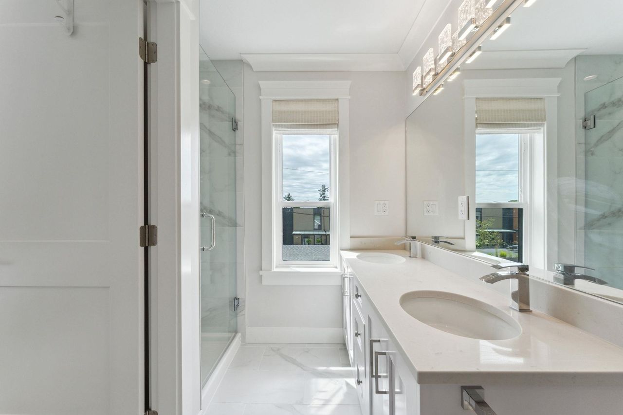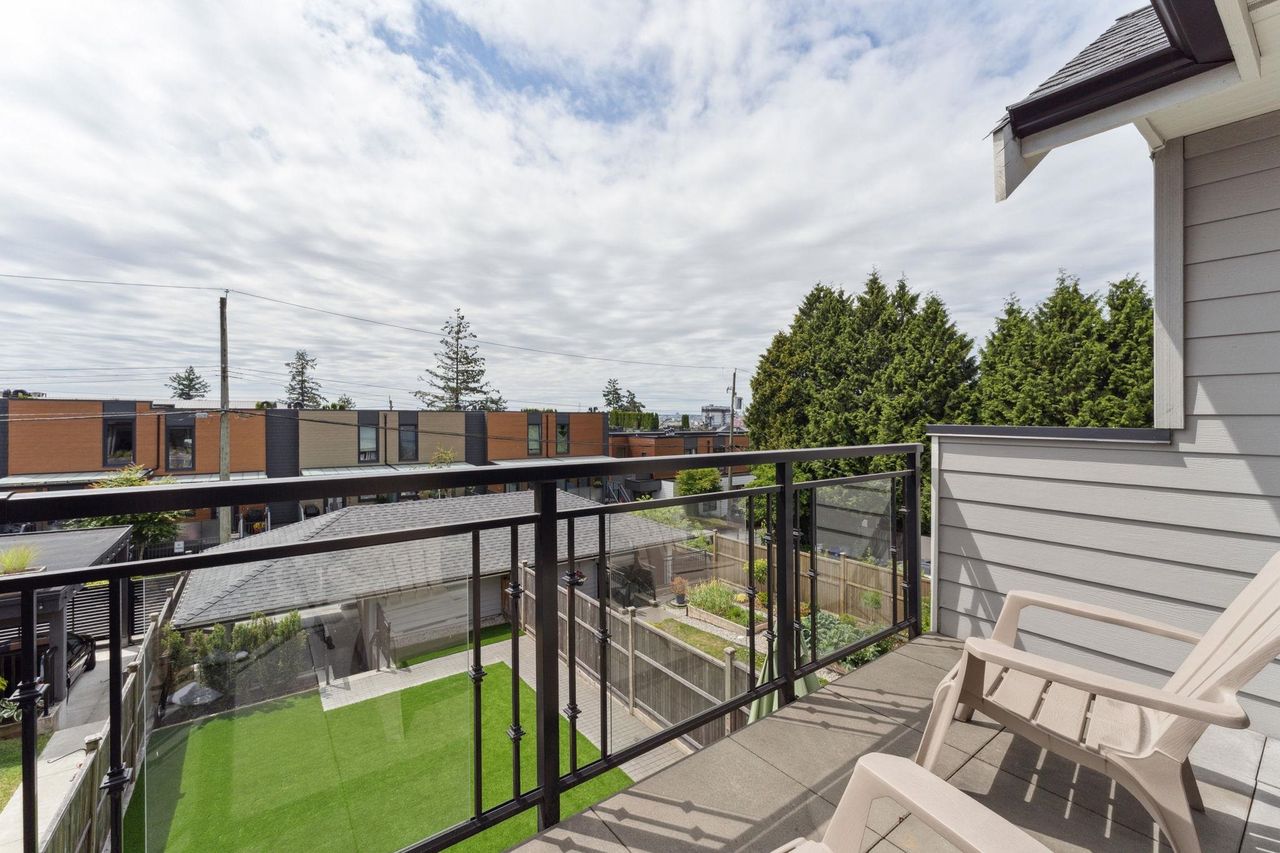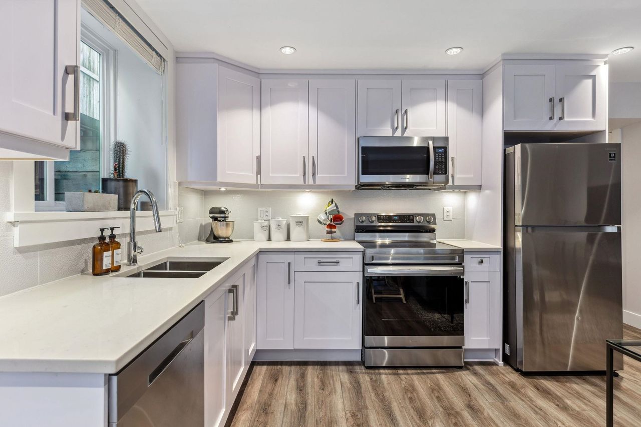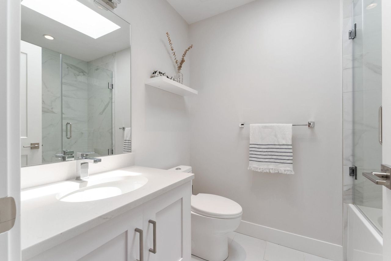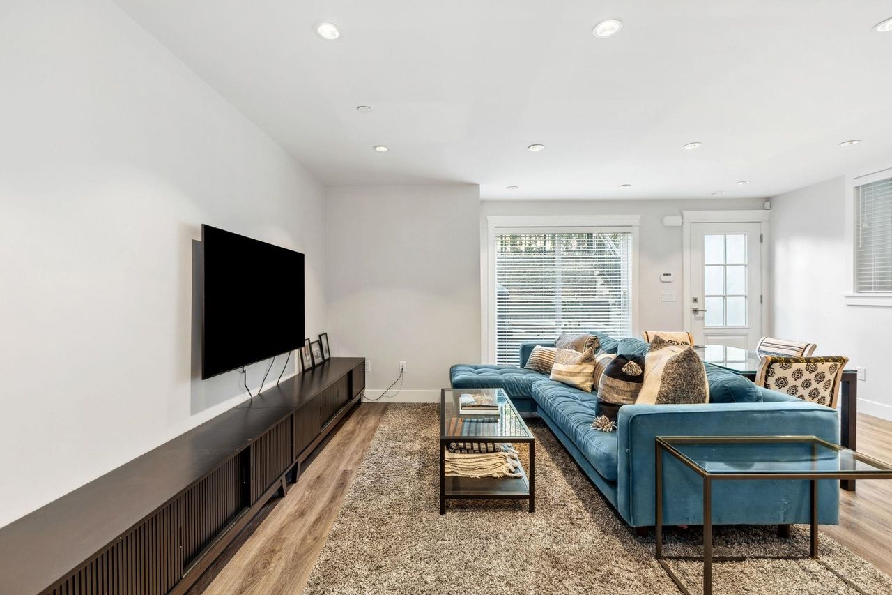 Stunning 2538ft Lower Lonsdale duplex by Rock Arc Development! Nestled on quiet 4th Street, this 5-bedroom, 4-bathroom residence spans 3 levels boasting wide open floorplan with stone countertops, stainless steel appliances, spacious kitchen with French doors leading to cedar deck and sunny south-facing private artificial turf yard. Enjoy beautiful hardwood floors, cozy gas fireplace, radiant heating, HRV, A/C, garage with covered carport, and rear lane access. Lower level hosts sizable legal 2-bedroom suite with its own entrance and patio - ideal for family members or mortgage helper. Enjoy peace of mind with 2-5-10 warranty. No restrictions, bylaws, maintenance fees or GST. Walk to Lonsdale Quay, restaurants and breweries, and incoming coffee and retail at Innova. Call today!