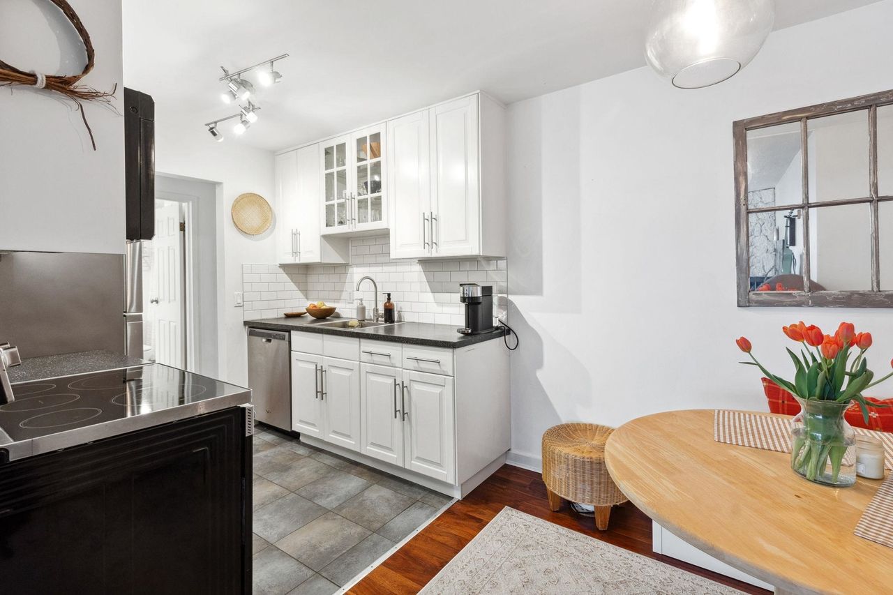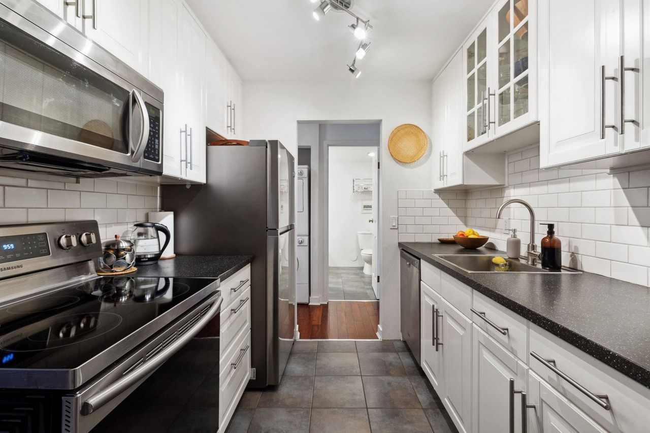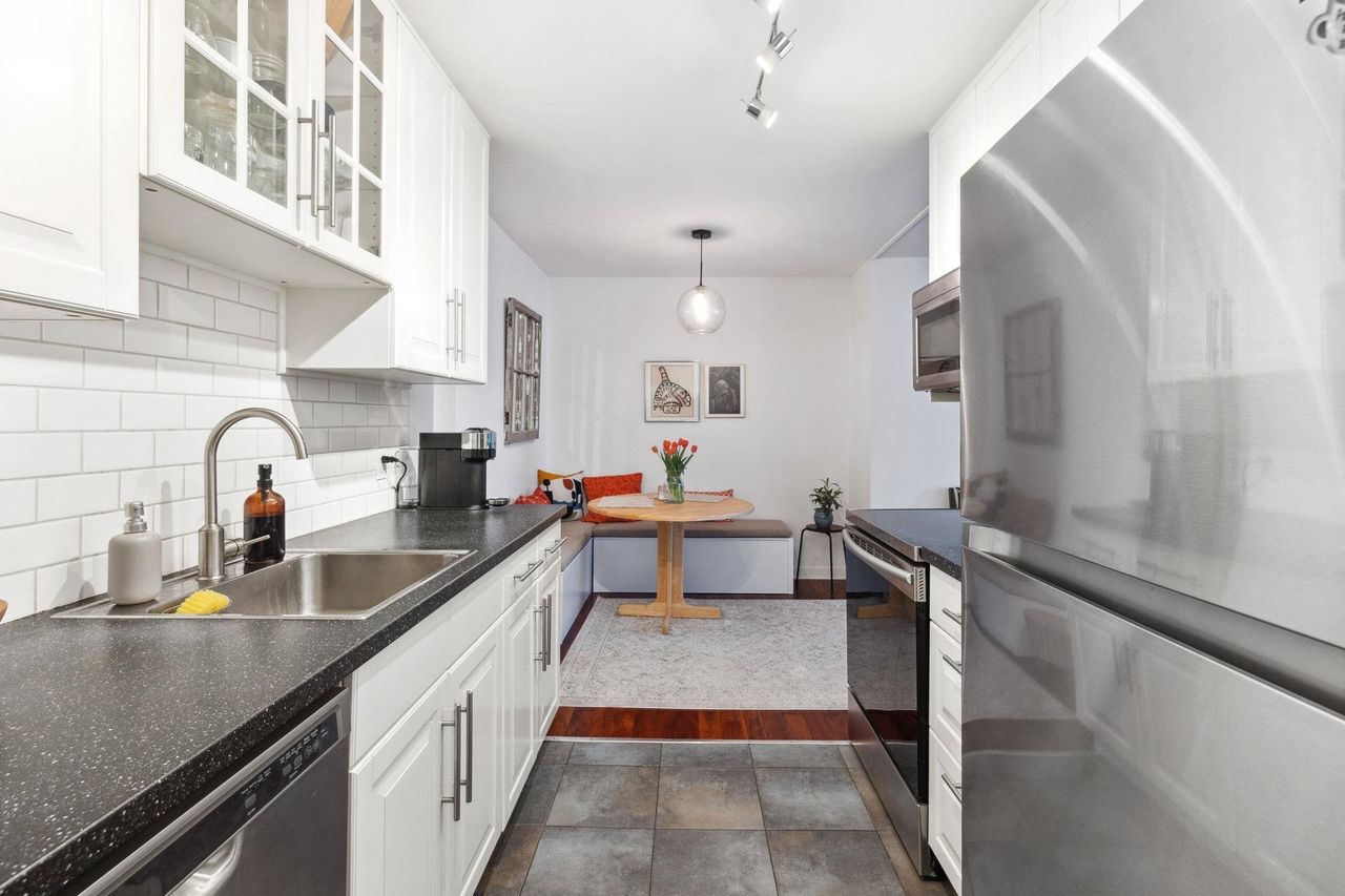 Bright and spacious top-floor home in the heart of Central Lonsdale! Dog-friendly and beautifully updated 1 bedroom + den suite featuring hardwood floors, modern kitchen w/ stainless steel appliances, renovated bathroom, in-suite laundry, and cozy natural gas fireplace. Boasts large bedroom plus versatile den perfect for home office or nursery. Enjoy partial mountain views from your generous east-facing balcony. Canterbury House is a well-managed building that welcomes pets and rentals, with recent upgrades including exterior painting, balcony railings, and parkade membrane replacement. Just steps to Whole Foods, Loblaws, almost-new Harry Jerome Rec Centre, the Library, cafés, restaurants, parks, and excellent transit options. Includes secured parking and storage locker. Call now!