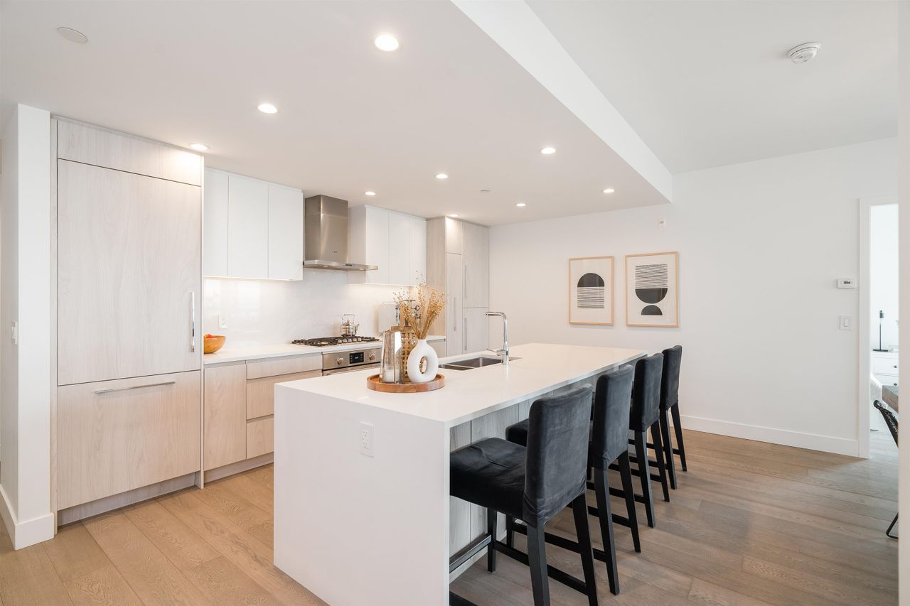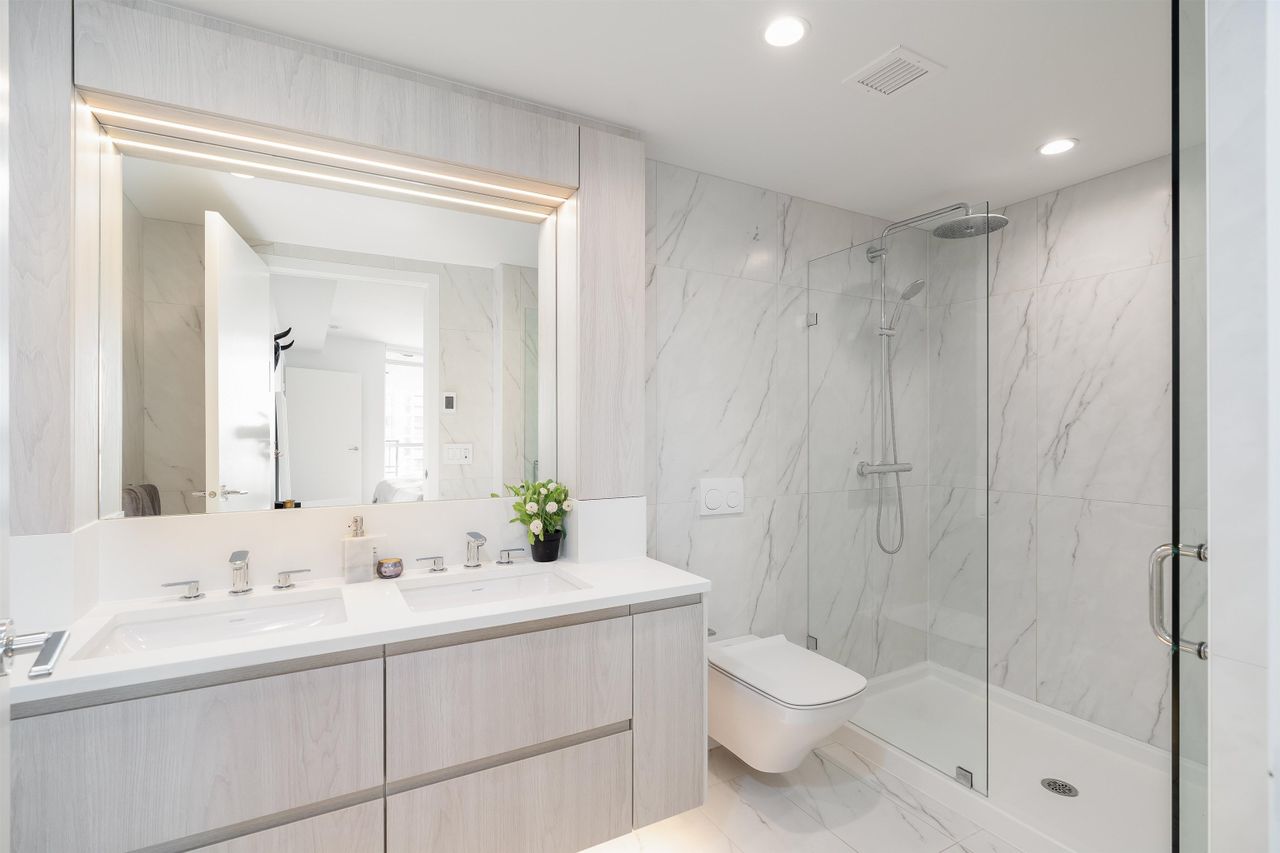 Welcome to Penthouse 504 at West Third by Anthem, a boutique concrete building in the heart of Lower Lonsdale. This 1,278 sq ft 2-bedroom, 2-bathroom top-floor home offers elevated living with 9' ceilings, air conditioning, and a bright open-concept layout. Take in stunning views of Vancouver Harbour and the city skyline through expansive windows that fill the home with natural light. Chef’s kitchen outfitted with Bosch appliances, quartz waterfall countertops, and full-height marble backsplash. Spa-inspired bathrooms feature radiant in-floor heating and porcelain tile, and luxurious primary suite incl a walk-in closet with custom organizers. Complete with laundry room, ample storage, two parking stalls, and storage locker. Steps to the Shipyards, SeaBus, and restaurants. Call today!
