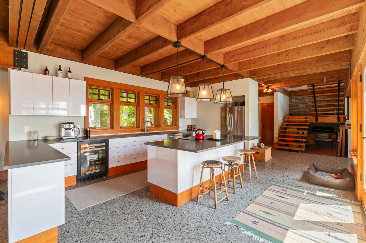 COURT ORDERED SALE. SOLD AS IS WHERE IS. Rarely available, WATERFRONT HOME just steps from popular West Beach. This SOUTHWEST facing Craftsman Style 2 Bed, 2 Bath home has the bonus of a detached COACH HOUSE with carport, workshop, garage and a studio style open living space with a 3 pc bathroom and beautiful sundeck off the upper area with incredible views.