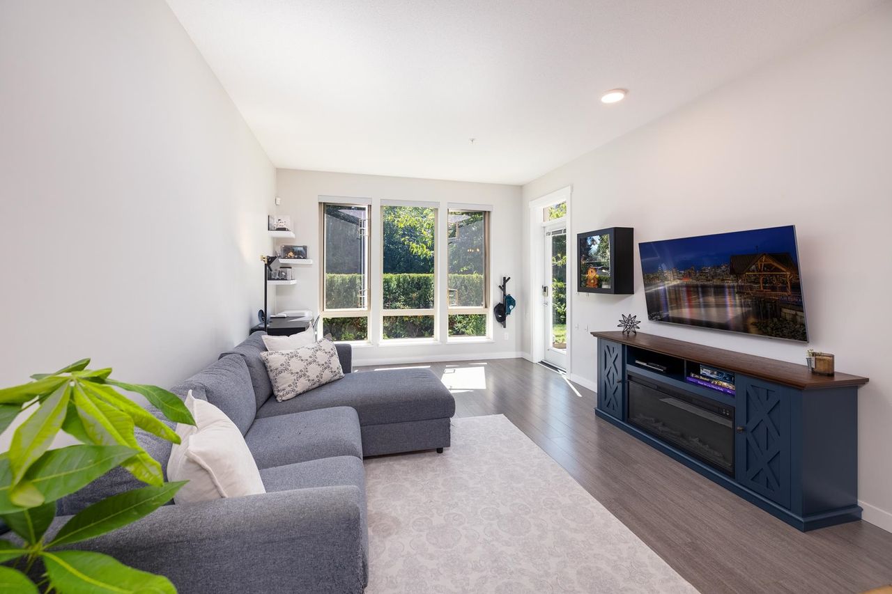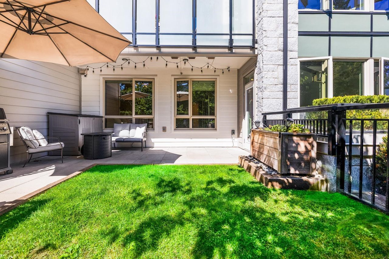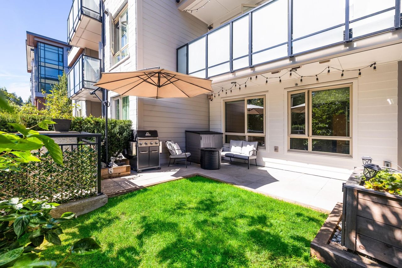 Beautiful Garden Suite 2 bed/2 bath with TWO PARKING and complete PRIVACY - this home has everything you could ask for! A South-West facing unit offering an ideal layout with a finely finished kitchen. Stone countertops, marble backsplash and a Fisher & Paykel fridge. Experience exceptional indoor/outdoor living with surrounding greenery for privacy around your yard & private patio for entertaining. Amenities include a party room, gym, bike storage & more. The unit comes with 2 side-by-side PARKING stalls (1 EV) and an OVERSIZED storage locker. Heating + hot water are part of the strata fee, truly the best unit in Lynn Valley!