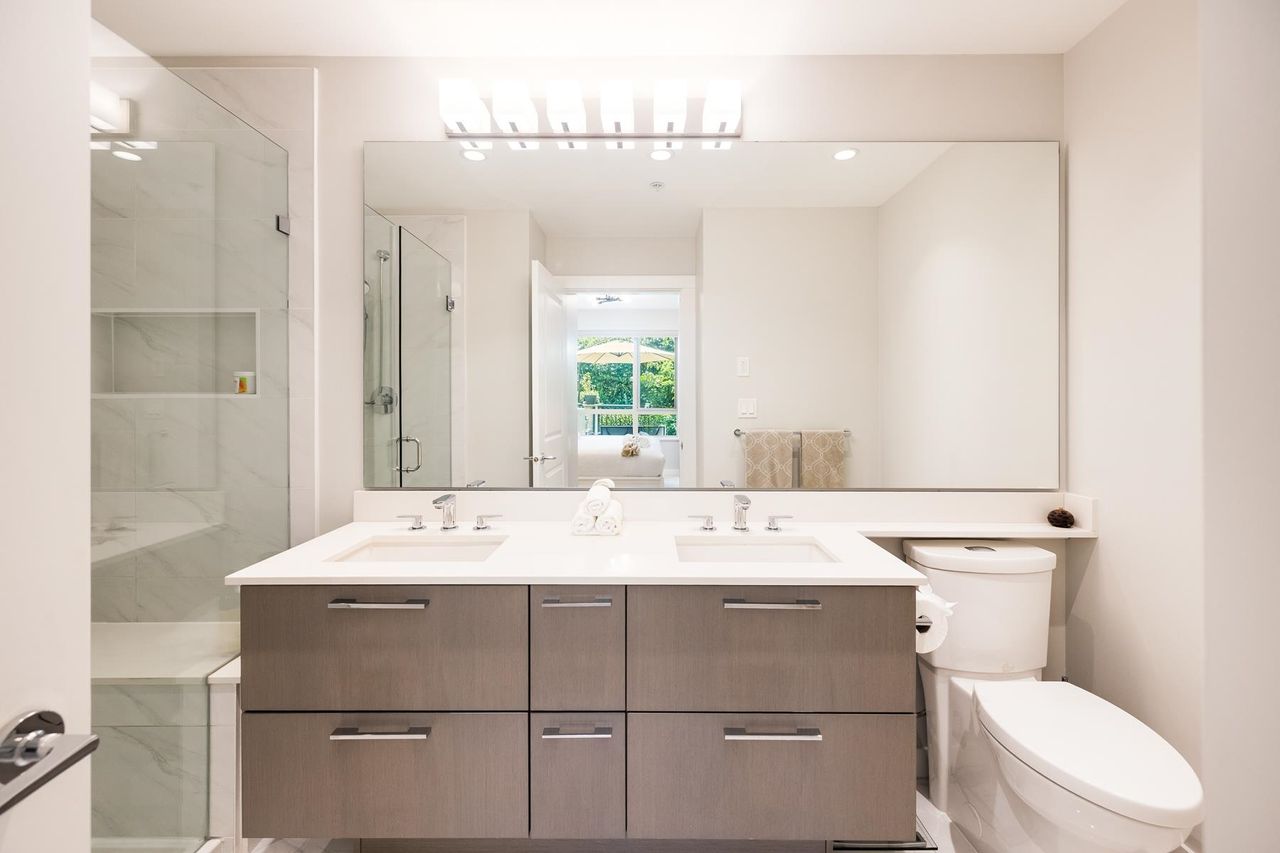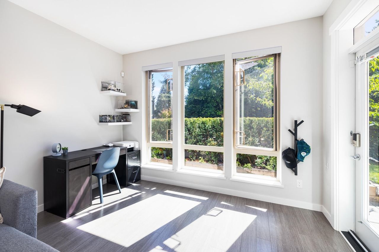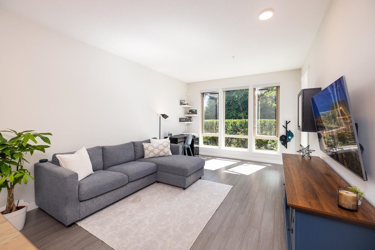 Beautiful Garden Suite 2 bed/2 bath with TWO PARKING and complete PRIVACY - this home has everything you could ask for! A South-West facing unit offering an ideal layout with a finely finished kitchen. Stone countertops, marble backsplash and a Fisher & Paykel fridge. Experience exceptional indoor/outdoor living with surrounding greenery for privacy around your yard & private patio for entertaining. Amenities include a party room, gym, bike storage & more. The unit comes with 2 side-by-side PARKING stalls (1 EV) and an OVERSIZED storage locker. Heating + hot water are part of the strata fee, truly the best unit in Lynn Valley!