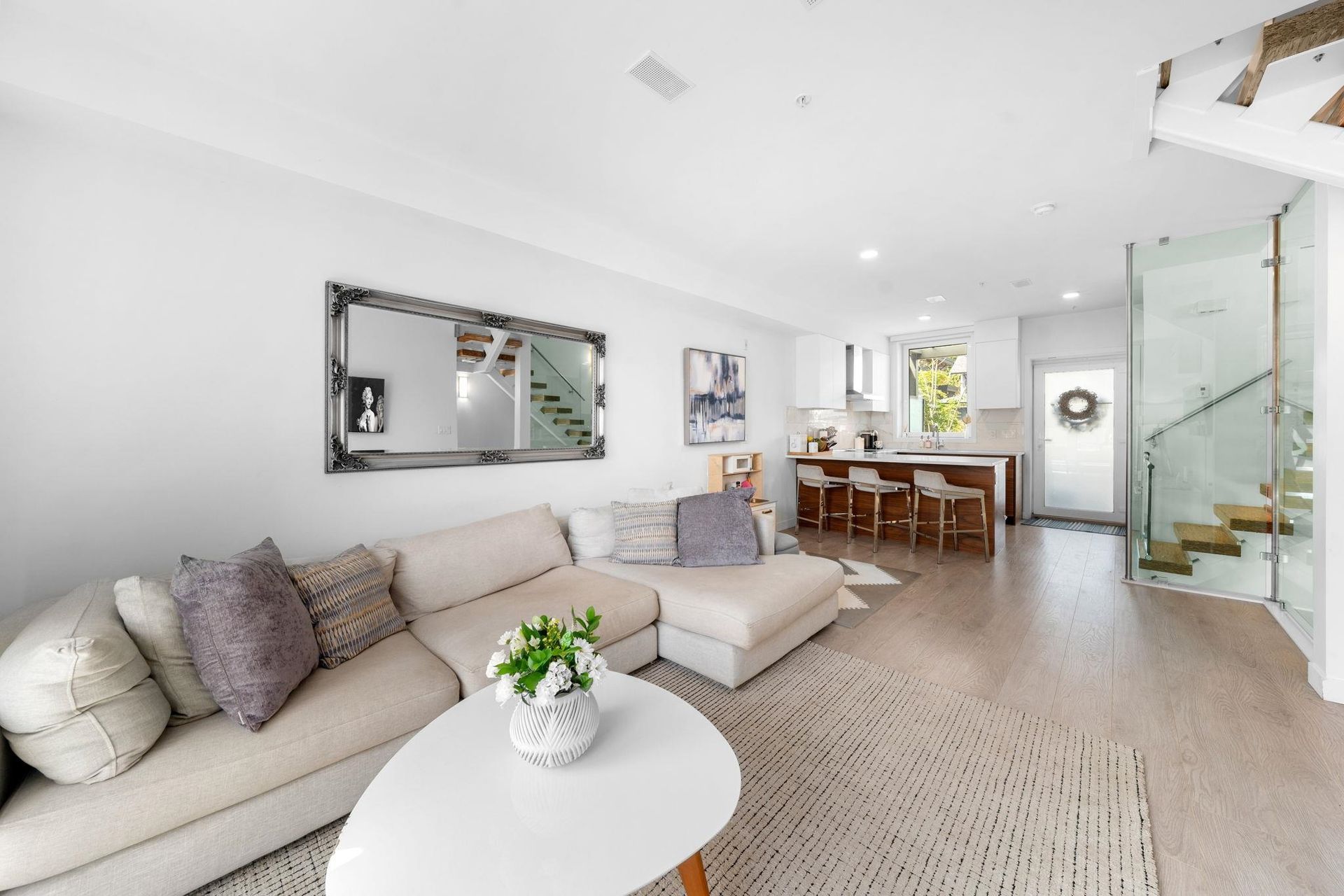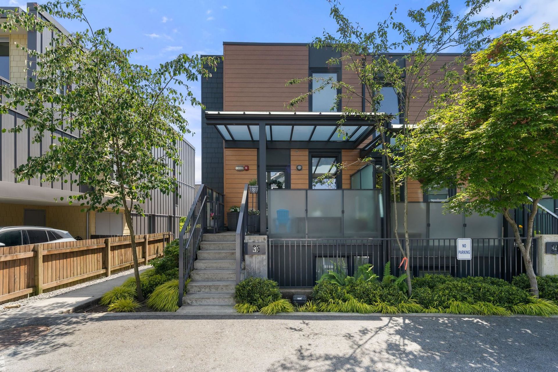 MORTGAGE HELPER! Welcome to Evolv35 – North Vancouver’s first Passive House townhomes in the vibrant community of Moodyville. This rare end-unit offers nearly 1900 sf of energy-efficient living across 3 levels, including a fully legal 1-bed suite currently rented for $1,950/mth. Enjoy a bright, open-concept main floor with a chef-inspired kitchen, two spacious patios, and high-end finishes throughout. Up features two bedrooms, including luxurious primary with ensuite, with a rec room down with a full bathroom ideal for kids or as a 4th bedroom. Built in 2020, this home boasts triple-glazed windows, radiant in-floor heating, air conditioning, 2/5/10 warranty, and a private garage with built-in storage and EV charger. Steps to Moodyville Park Lower Lonsdale via the Spririt Trail. Call now!