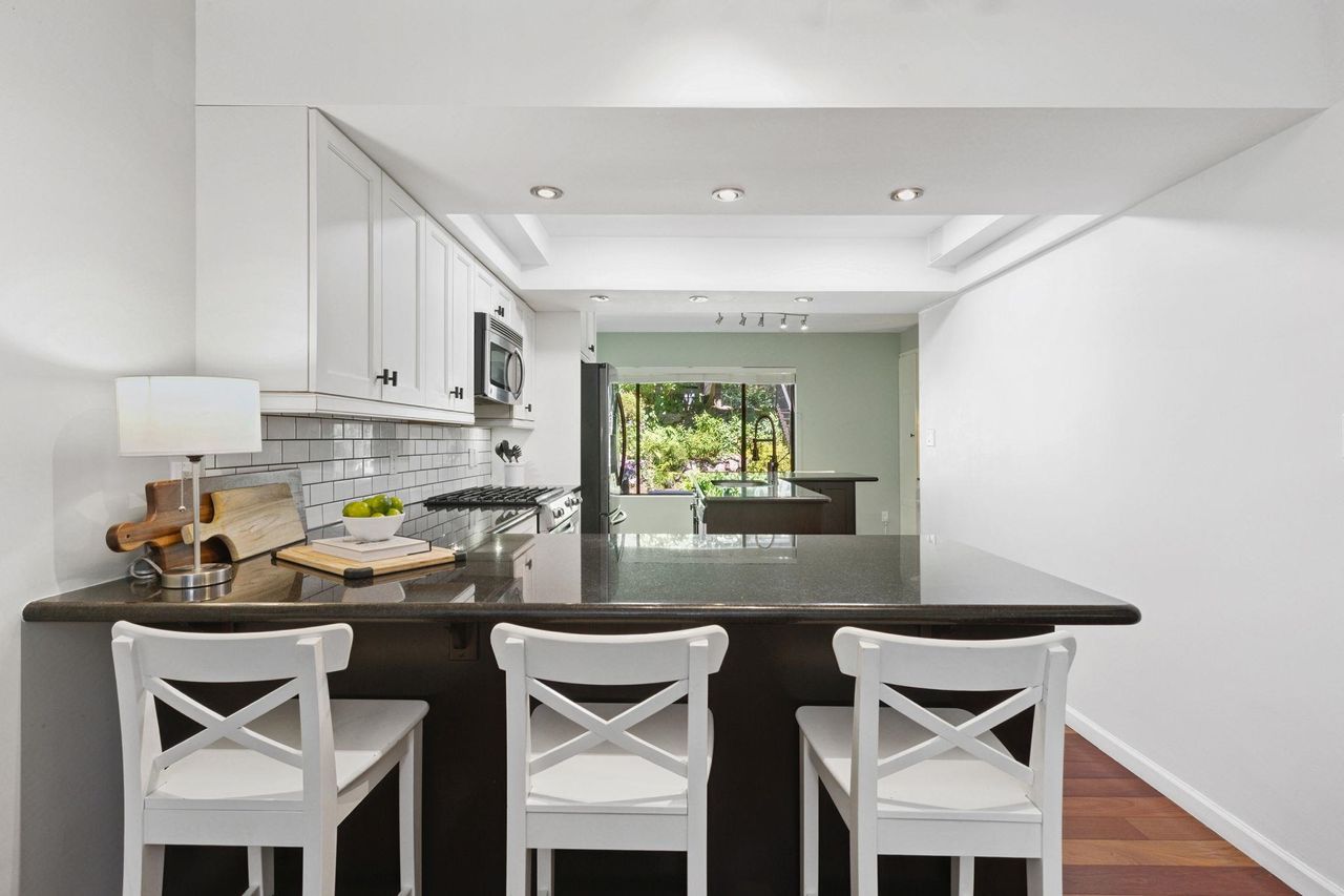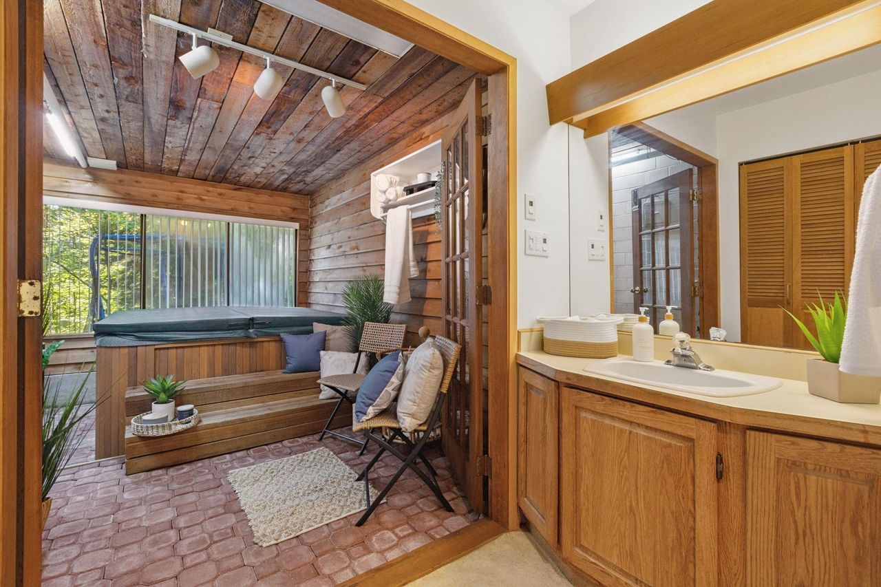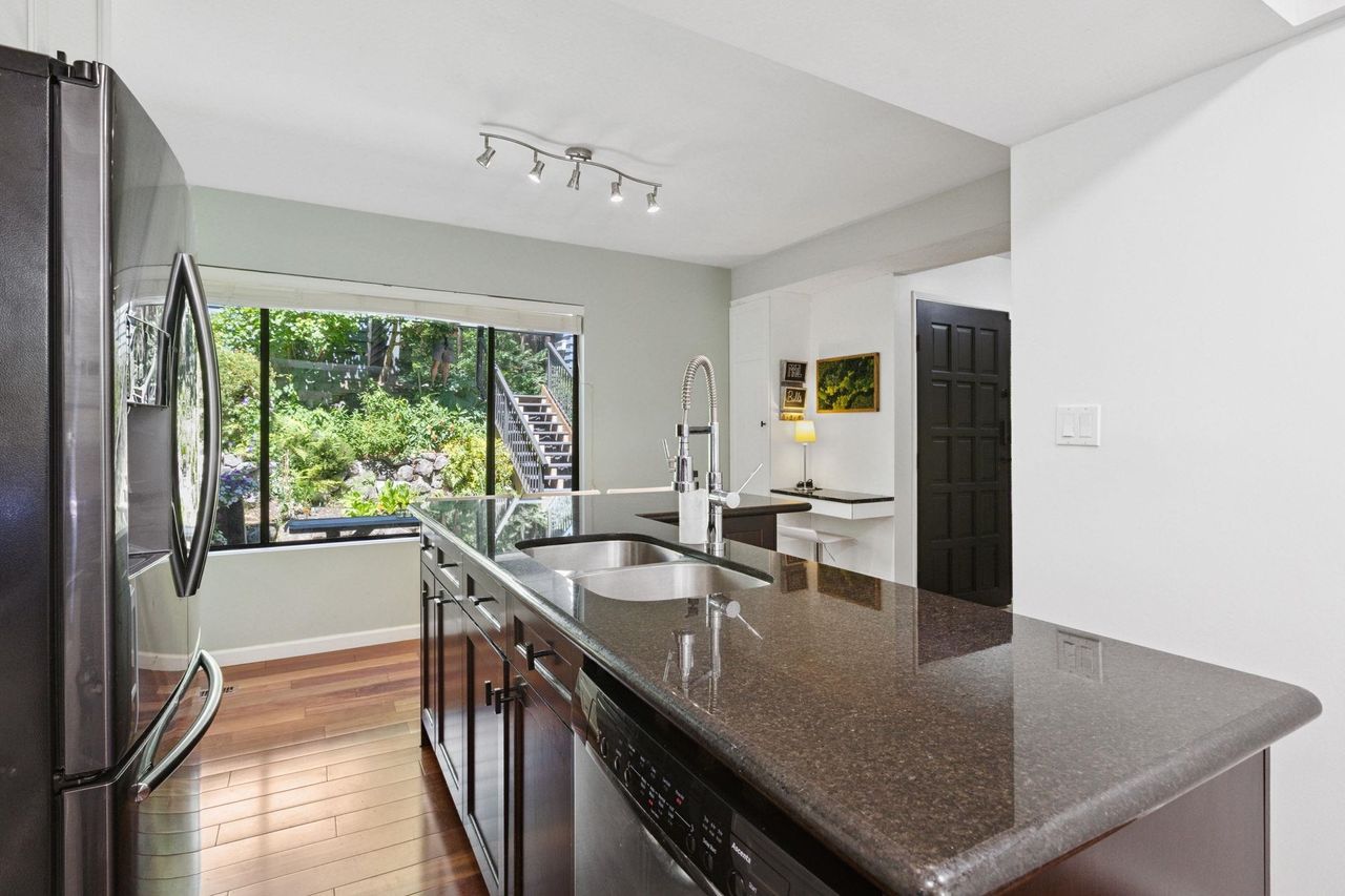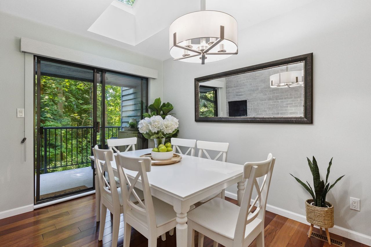 Welcome to Laura Lynn—a serene, park-like community in the heart of Lynn Valley, nestled beside Princess Park. This beautifully updated townhome offers nearly 2,500 sqft across 3 levels, with 3 bedrooms (plus optional 4th) & 4 bathrooms. Main floor boasts bright, open layout w/ modern kitchen, spacious dining area, and cozy living room w/ gas fireplace opening onto a sunny, south-facing deck. Upstairs find 3 bedrooms, incl generous primary suite with walk-through closet and ensuite, and new laundry. Lower level feat large rec room, office, workshop, covered patio, and spa area w/ hot tub & full bath. Complete with double carport and resort-style amenities incl a pool, tennis courts, and clubhouse. Quiet, family-friendly complex minutes to schools, shopping, transit and trails. Call today!
