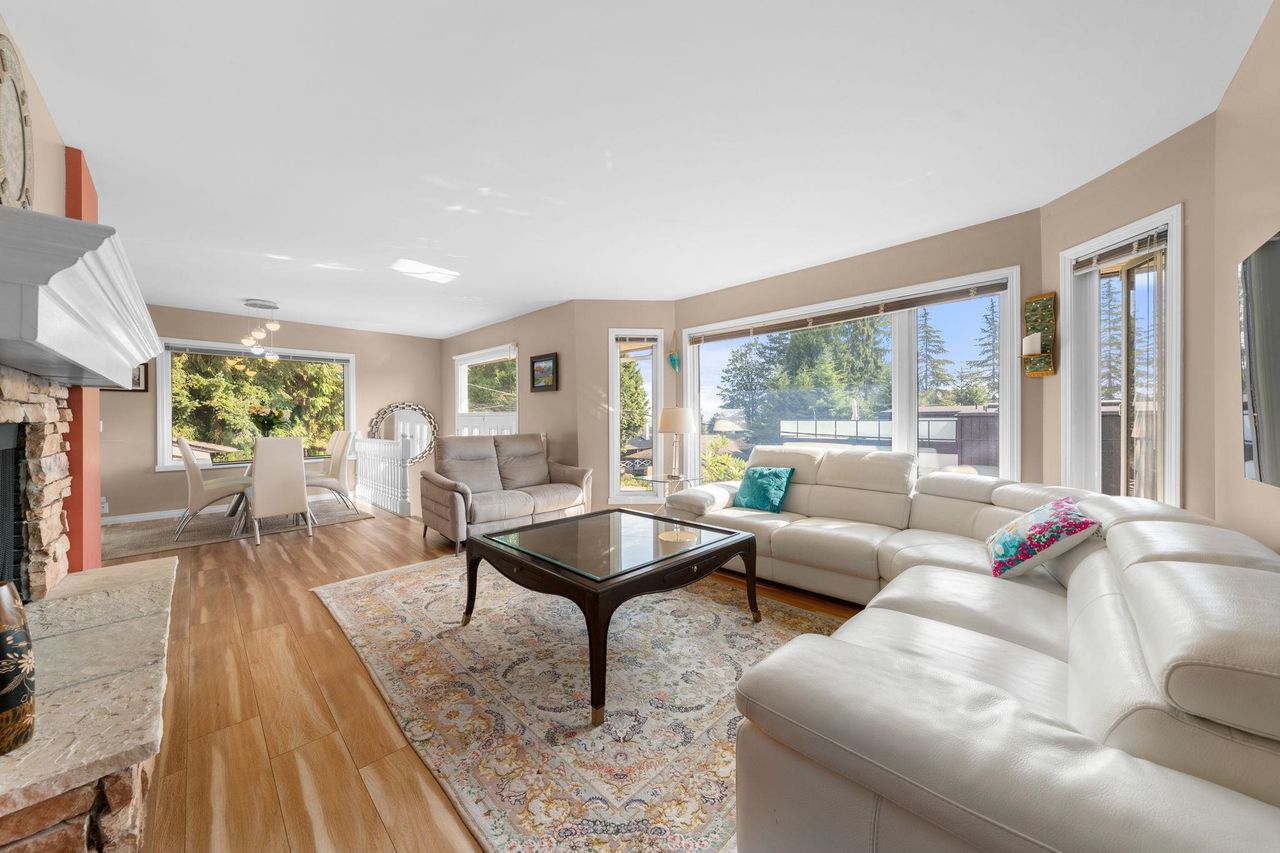 Beautifully updated 5-bedroom, nearly 2,400 sq ft home w/ stunning mountain views and 2-bedroom above ground suite! This bright home offers 3 beds + 2 baths on the main, spacious kitchen w/ new counters and appliances, cozy wood-burning fireplace, large south-facing deck + fenced yard. Private entry 2-bed 1-bath ground-level suite w/ separate in-suite laundry and storage. Upgrades: triple-pane windows (2024), new flooring (2022), high-efficiency furnace + hot water tank (2021), upgraded electrical and more. Detached garage/workshop, 2 fenced yards + convenient transit access direct to Burrard Station. Easy walk to elementary + secondary schools, Cates Park, Deep Cove, Parkgate + Dollarton shopping centres, golf, and world class hiking and biking. Outstanding value - call today!