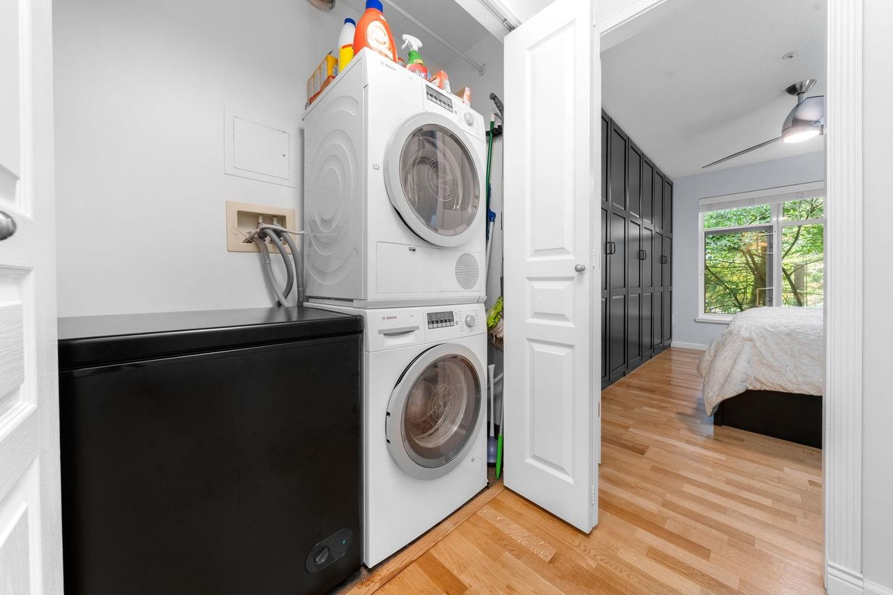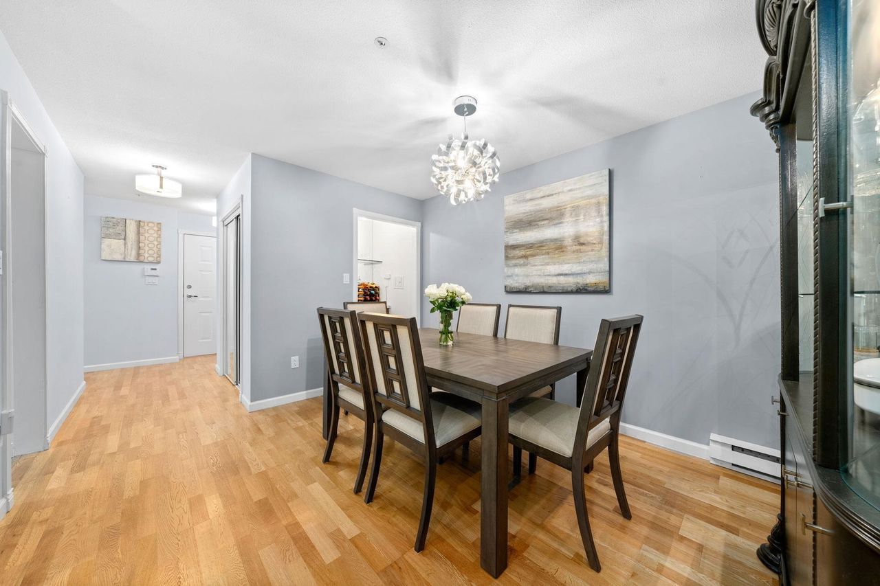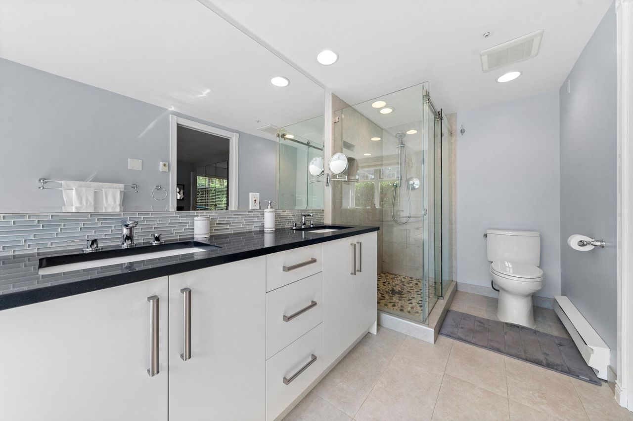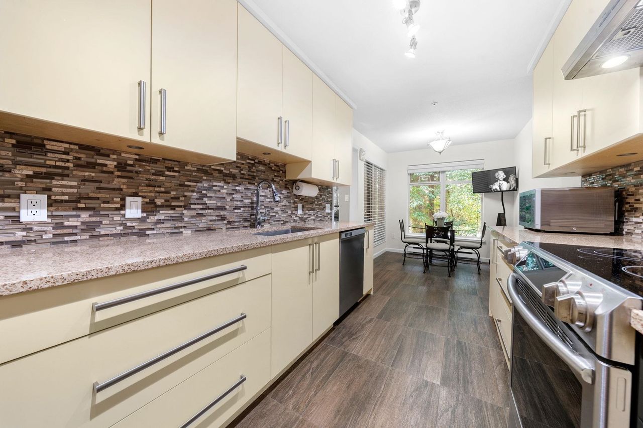 Beautifully renovated and generously sized 1,454 sq ft 2bed+ family room (or 3rd bedroom) pet friendly suite with house-sized rooms and tranquil greenbelt views. Features include a full dining room with custom mini-bar, updated kitchen with quarz counters and S/S appliances, engineered hardwood floors, renovated baths, and limestone f/p. Enjoy the amenities room and "Lion's Den"guest suite and the convenience of a massive storage locker, secure bike room, and two dedicated parking stalls (EV ready) in a gated underground garage. This well-managed, proactive strata boasts a robust Contingency Reserve Fund of nearly $2 million, offering peace of mind and long-term stability. Enjoy walking trails, shopping, transit and easy access to bridges with this convenient location. Open House Sun 2-4pm