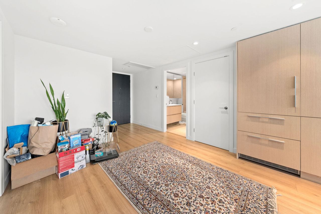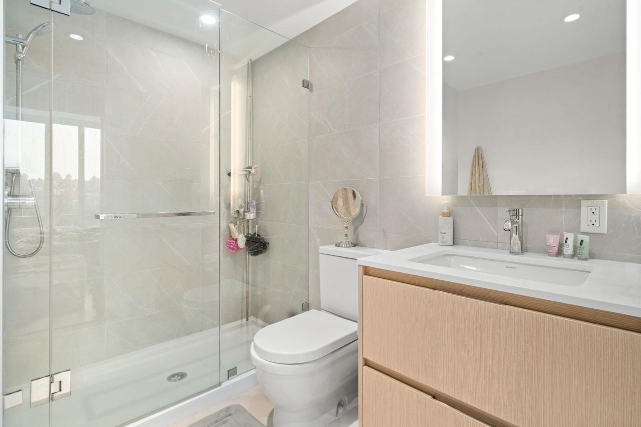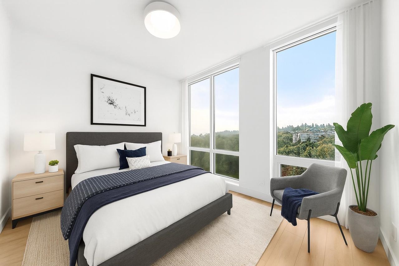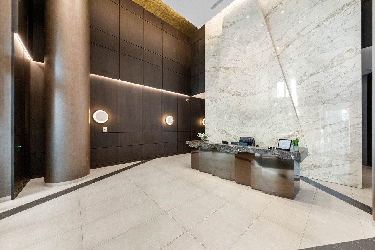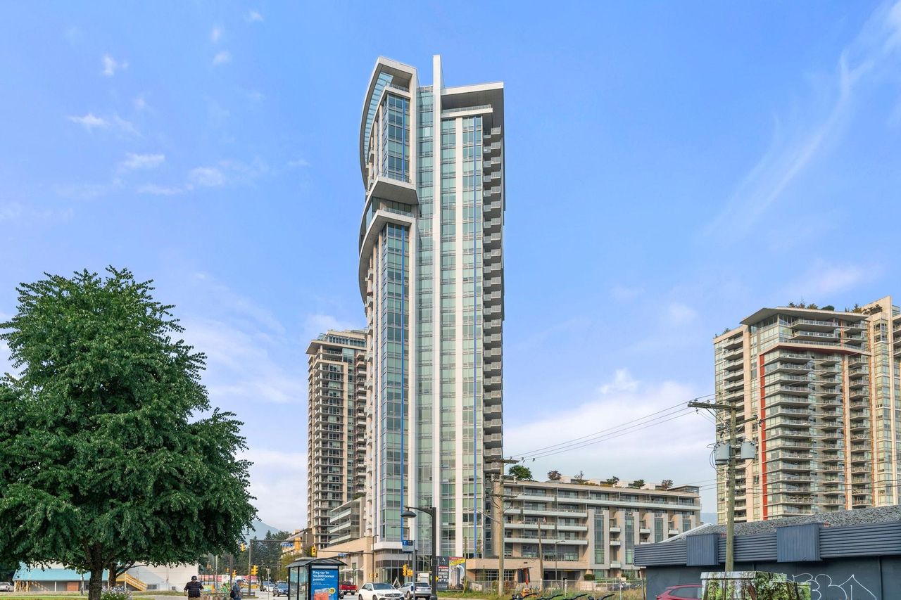 Considered the 'Pinnacle of Seylnn Village', this 2 bedroom, 2 bath suite in Denna's newest building, APEX, offers views from the city skyline to the North Shore mountains. This NW corner unit features an expansive balcony with gas hook up, floor to ceiling triple glazed windows, European cabinetry, Quartz counters and AC. . Premium AEG appliances are integrated into the stylish kitchen interior and an expansive island which offers great room separation from the living areas also offers a convenient spot for casual meals. This luxury tower boasts endless amenities including the Denna Club with its 25 meter lap pool, hot tub, steam room, sauna, party, meeting & media rooms and concierge service in the stunning lobby. Some photo's virtually staged. Court ordered sale.