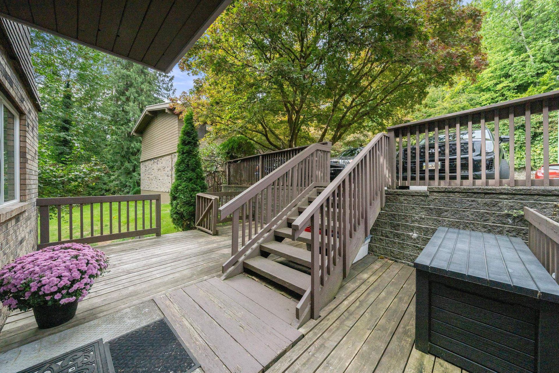 Absolutely gorgeous corner end unit surrounded by lush greenery for ultimate privacy. Beautifully renovated with wide-plank laminate floors, recessed pot lighting, a cozy corner wood-burning fireplace & new windows throughout. The elegant sleek kitchen features stainless steel appliances, new cabinetry & glass tile backsplash. You'll love the convenience of having 4 updated bathrooms, each with custom vanities & modern fixtures. Enjoy dinners on one of the main-floor BBQ decks before lounging in the spacious rec room with it's direct access to what is basically a huge back yard. The Evergreens is a well run family-friendly community with an indoor pool, sauna, new playground and many recent upgrades which include wiring, downpipes and exterior paint. Open Sunday Nov 2nd 2-4pm.