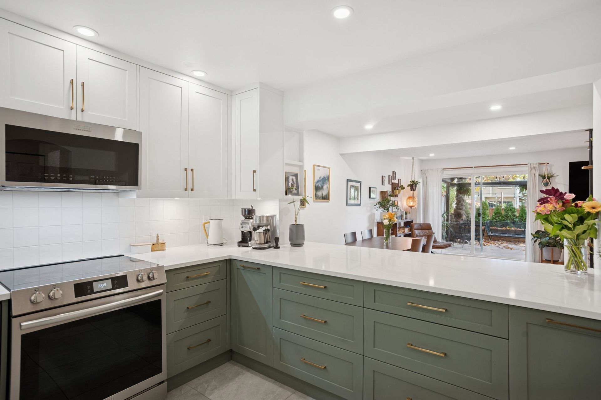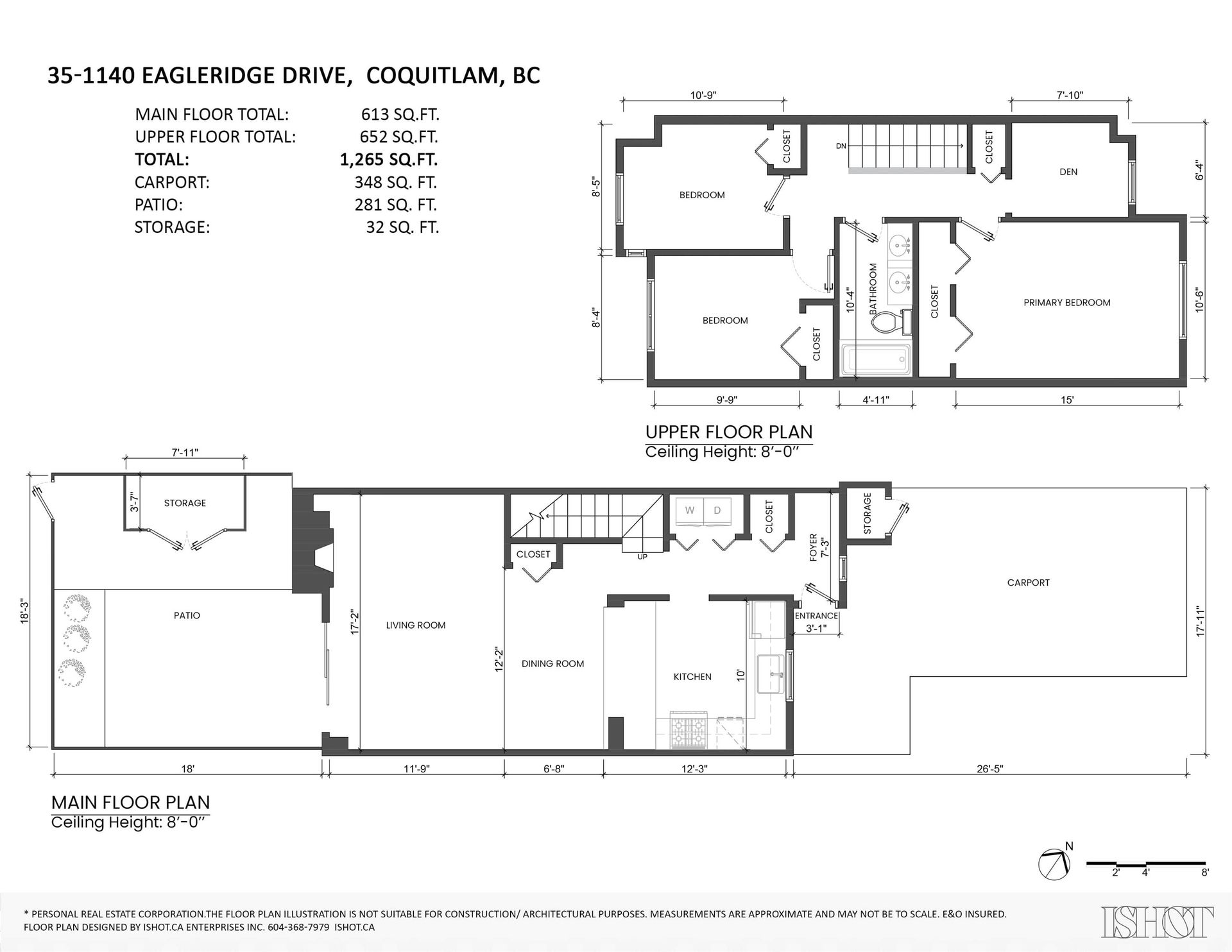 This is Eagle Ridge at its best—fully renovated, redesigned, and move-in ready. This 3-bed+den, 2-lvl TH features a standout 2-tone kitchen w/ heated floors, sage green + white shaker cabs, gold hardware, quartz counters, tile backsplash + S/S appls. Beautiful refinished solid birch HW floors, cozy wood burning fireplace, fresh paint, pot lights, updated doors/baseboards + sleek entry tile. New vinyl slider opens to a priv fenced patio ideal for kids, pets + entertaining. Up offers 3 beds, open den + spa-style bath w/ dbl-sink vanity, new tile + modern fixtures. Priv covered carport at your door; proactive complex w/ updated windows + roof. Short walking distance to Newport Village, Suter Brook, Coq Centre, parks, schools, daycares, hospital + SkyTrain. Book your showing today.