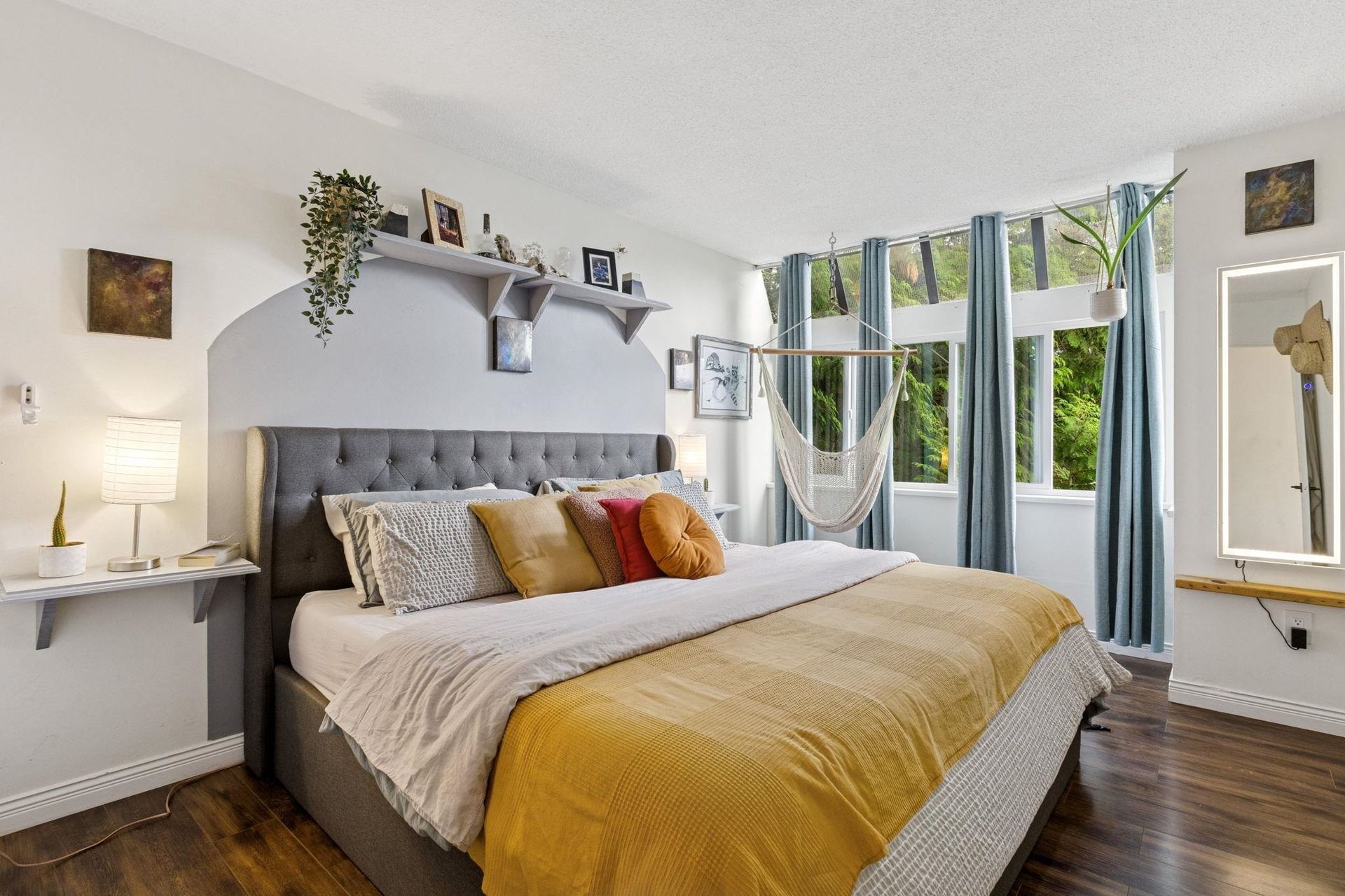 Fully renovated top-floor two-bedroom home in a boutique building, quietly set just half a block off walkable Central Lonsdale. South-facing with vaulted cedar ceilings, laminate flooring, new electric fireplace, and expansive windows overlooking a lush, private treed outlook, this home offers a rare combination of privacy, character, and modern finishings. Custom renovation features all new kitchen w/ shaker cabinetry, stone counters, tile backsplash, s/s appliances, new lighting, paint, doors & trim. Relax in the spa-inspired bath with glossy tile surround, new tub, maple vanity and fixtures. Spacious primary fits king-size bed, and large 2nd bedroom perfect for kids or home office. Well-managed proactive strata, complete w/ in-suite laundry, parking & storage. Pets welcome. Call today!