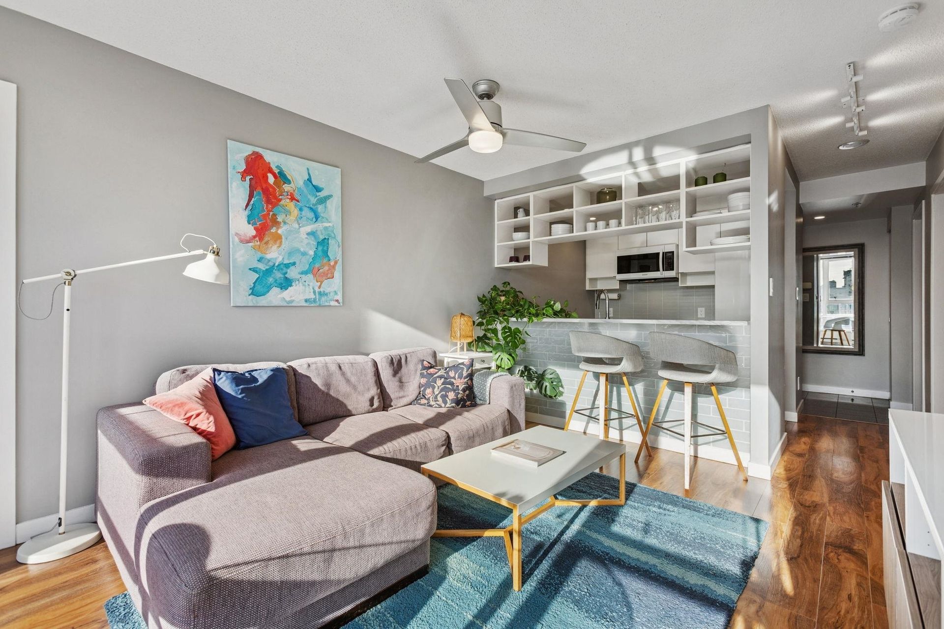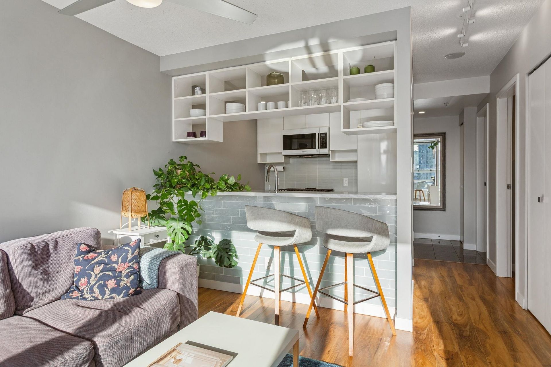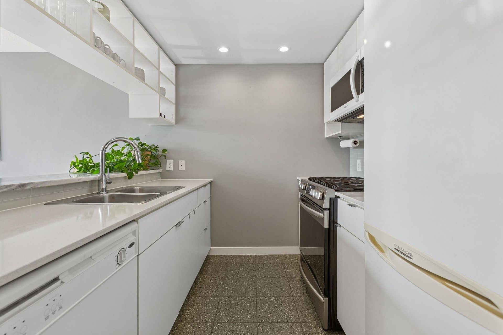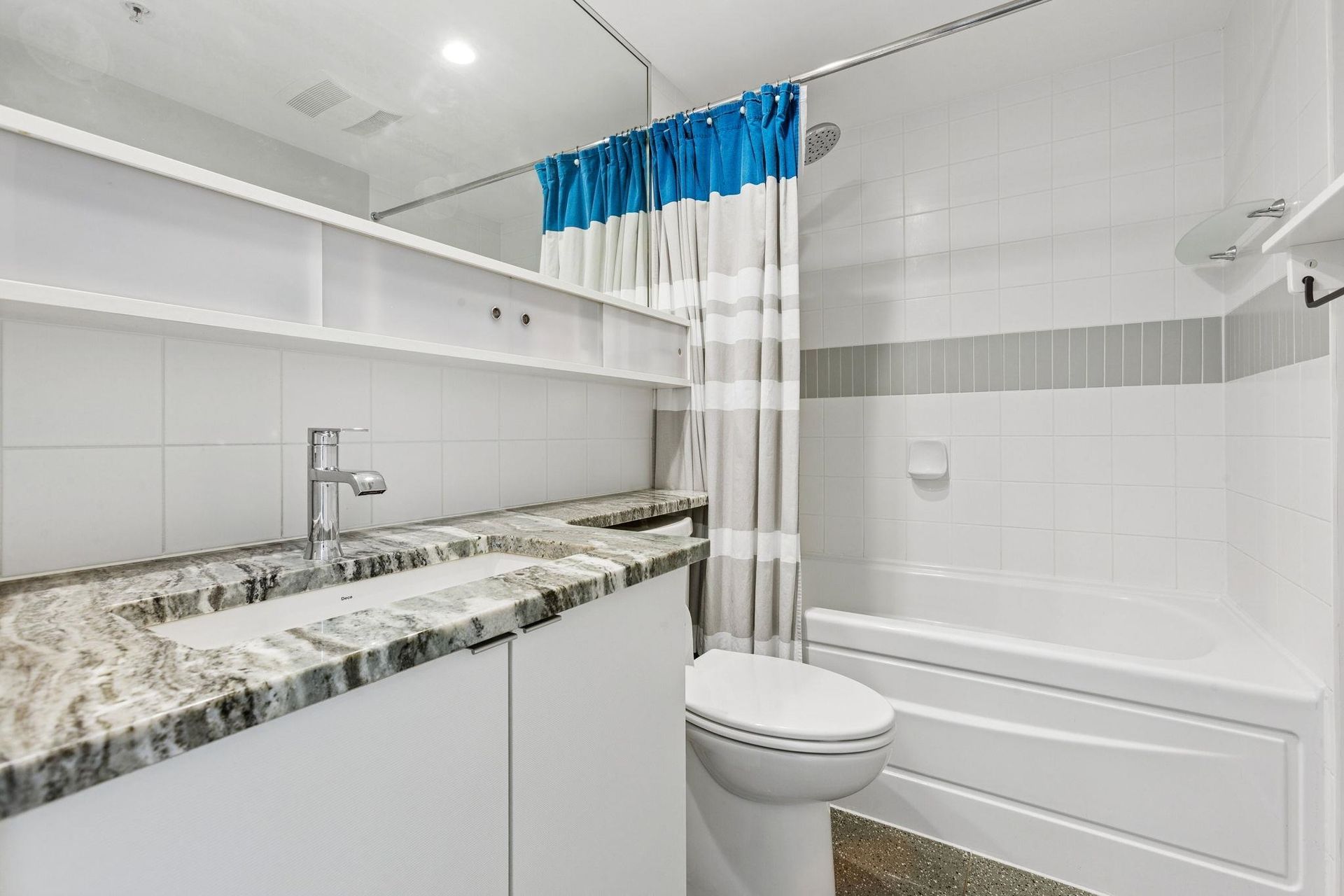 Space where you need it. Location where you want it. Bright and spacious 1 bed + den + bonus flex home with a layout that can’t be beat. South-facing floor-to-ceiling windows fill the home w/ natural light and connect seamlessly to the large, covered patio, extending your living space year-round. Wide plank laminate flooring, wood panel accent walls, marble + quartz counters, granite vanity, and extensive custom built-ins w/ LED lighting. Recently refreshed w/ new paint, stove, washer/dryer, microwave and garburator. Outstanding amenities: concierge, pool, hot tub, sauna /steam, gym, media room, party room, billiards lounge, visitor parking, and bike room. Steps to the seawall, SkyTrain, Rogers Arena, BC Place and vibrant Yaletown core. Pets/Rentals welcome, 1 parking/1 storage. Call now!