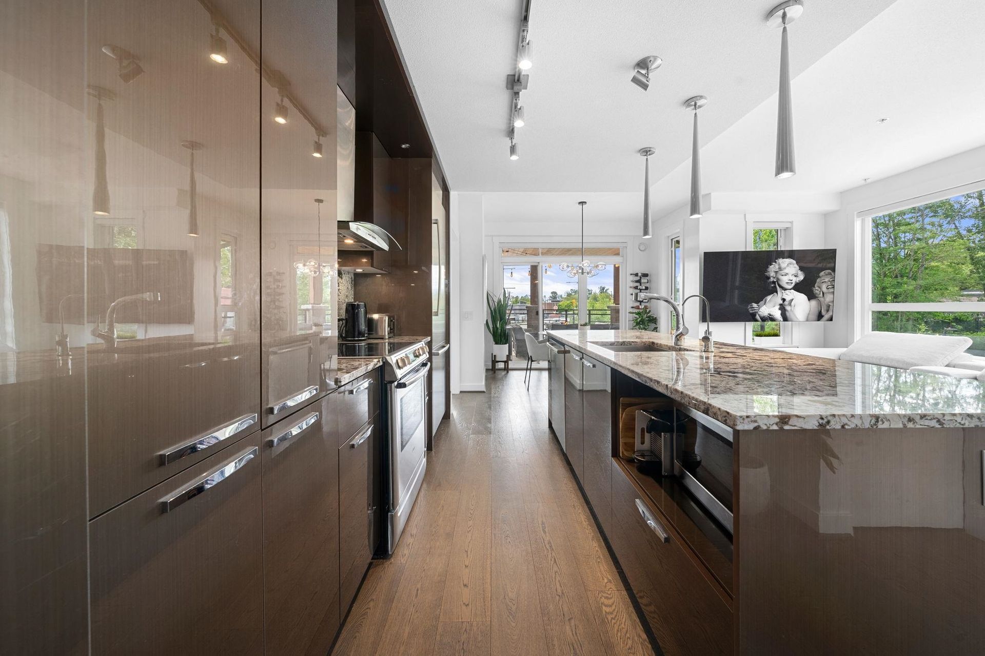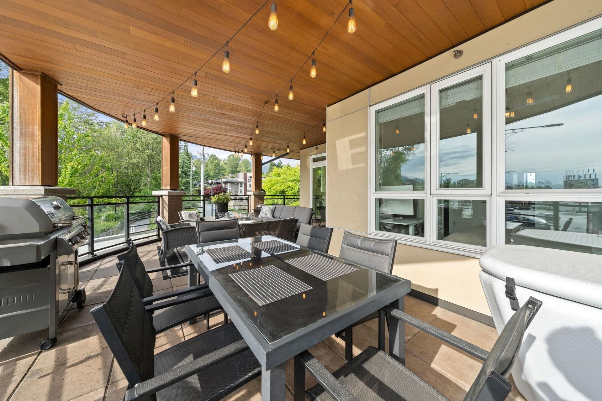 Rare 440 Sqft Private Patio Overlooking Mosquito Creek – A True Outdoor Oasis at Remix. Offering nearly 1,400 sqft of indoor/outdoor living space with massive wraparound patio, this bright 2-bedroom + den, 2-bath corner home features over-height ceilings, expansive windows, and smart layout with separated bedrooms for added privacy. Modern kitchen w/ granite counters, s/s appliances, and large island w/ breakfast bar. Flexible den perfect for home office or extra storage space. Tucked away in the pet-friendly Remix building, you're just steps from the Spirit Trail, dog park, shops, cafes, breweries, and transit. Incredible indoor/outdoor living in one of North Vancouver’s most walkable, connected communities. Complete with EV parking and storage. Don’t miss it - call today!