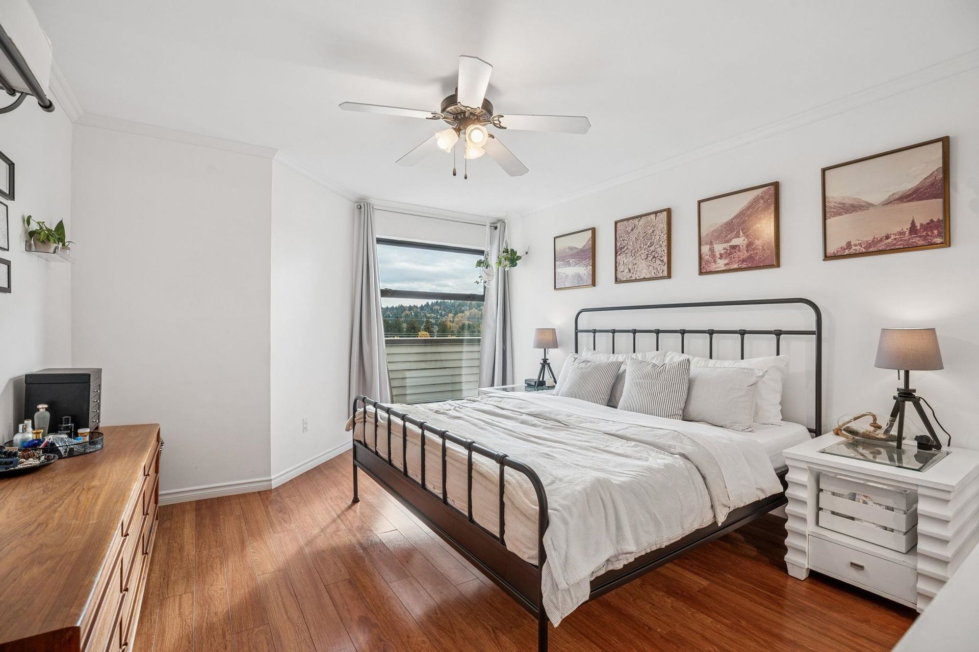 Don't miss this top-floor south-facing home offering well-designed 2-bed + den layout across 928 sqft! Enjoy all-day sunshine from large windows throughout. Extensively updated with fresh paint, flooring, trim, appliances, light fixtures, fireplace surround, tile, plumbing fixtures, and refreshed shower surround, making this home truly move-in ready. The versatile den is ideal for a home office, nursery, or extra storage. Complete with 1 parking stall and 1 storage locker. Owners at Glenborough benefit from highly walkable neighbourhood just steps to Coquitlam Centre, Lafarge Lake, Douglas College, shops, restaurants, parks, and recreation, with convenient walking access to Lincoln SkyTrain Station and the West Coast Express. A rare top-floor suite opportunity - call today!