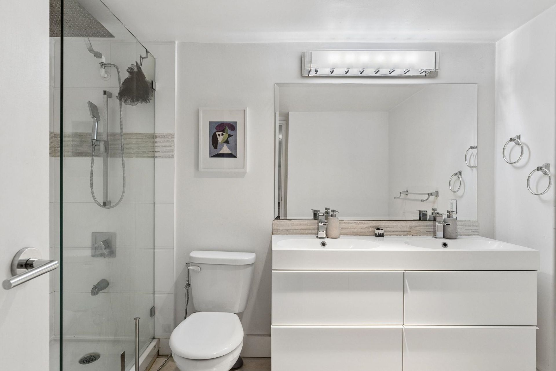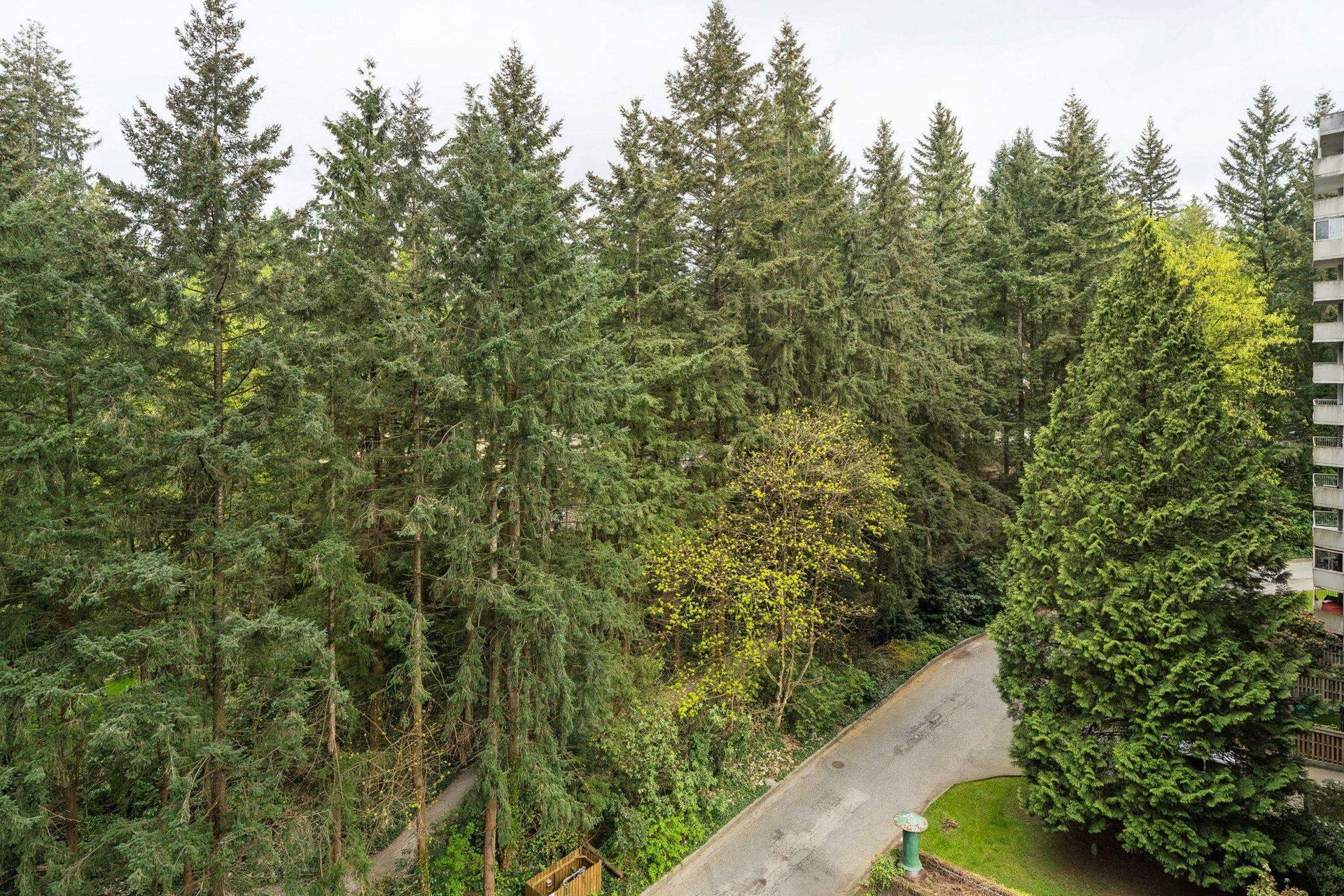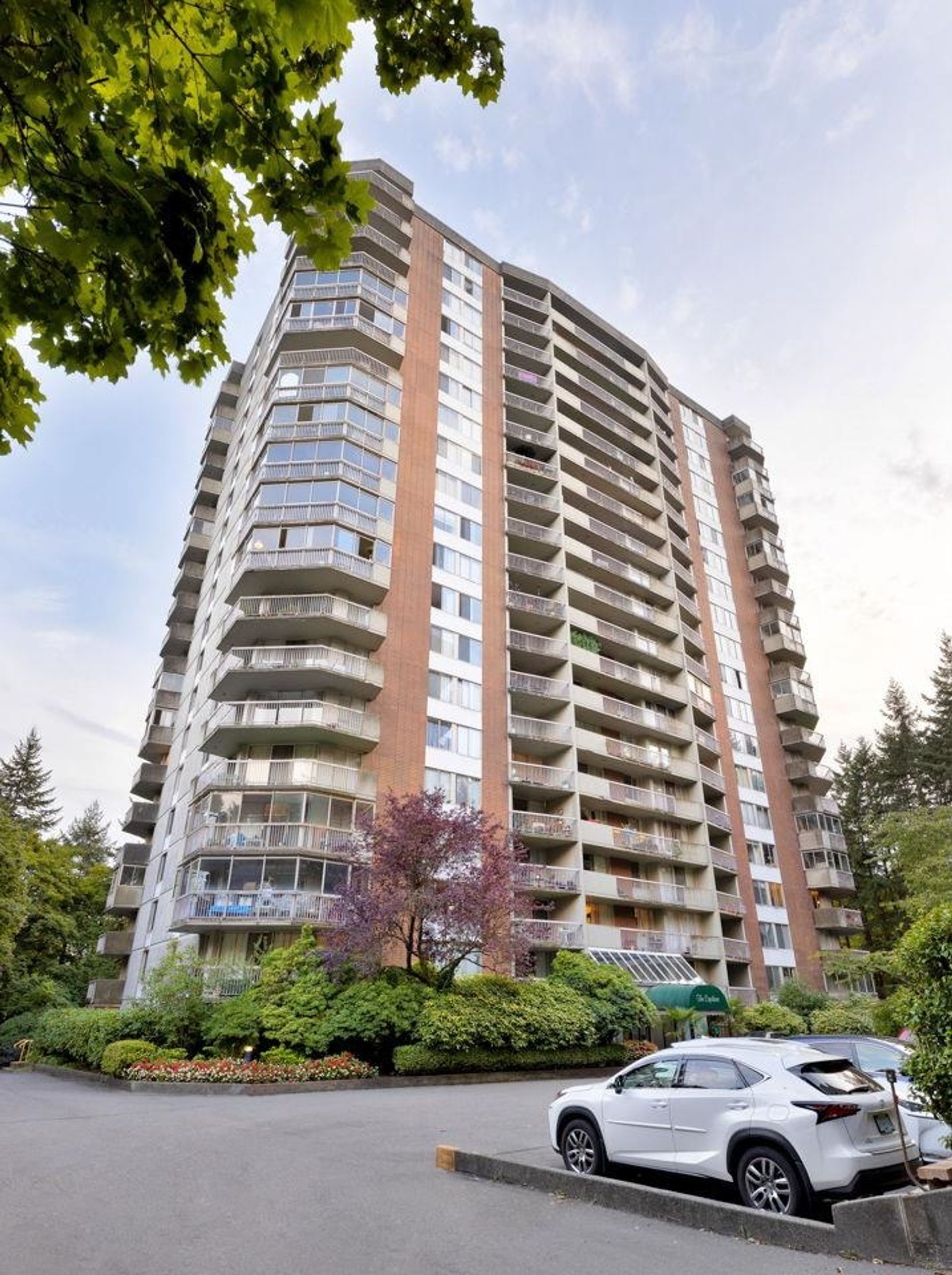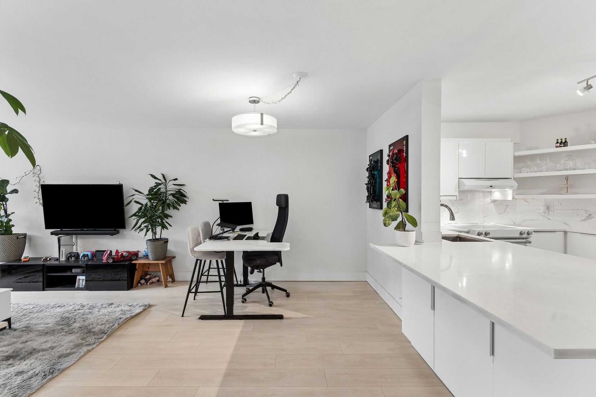 Designer-renovated and unlike anything else in the Woodcroft complex. This reimagined 1 bedroom + large den + solarium offers 870 sqft and one of the most wide open floorplans in the complex. Beautiful oversized kitchen with large island, premium appliances, custom cabinetry, and seamless flow to the living space. Spacious bedroom with room for king-sized bed features custom walk-in closet, while the spa-inspired bathroom includes a double vanity and oversized shower with bench. Owners at the Capilano enjoy resort-style amenities including an indoor pool, gym, hot tub, sauna, and lounge spaces with a vintage speakeasy feel. Maintenance fees include heat, hot water, and electricity. Complete w/ parking and storage, and just steps to Park Royal and the Capilano River trails. Call now!